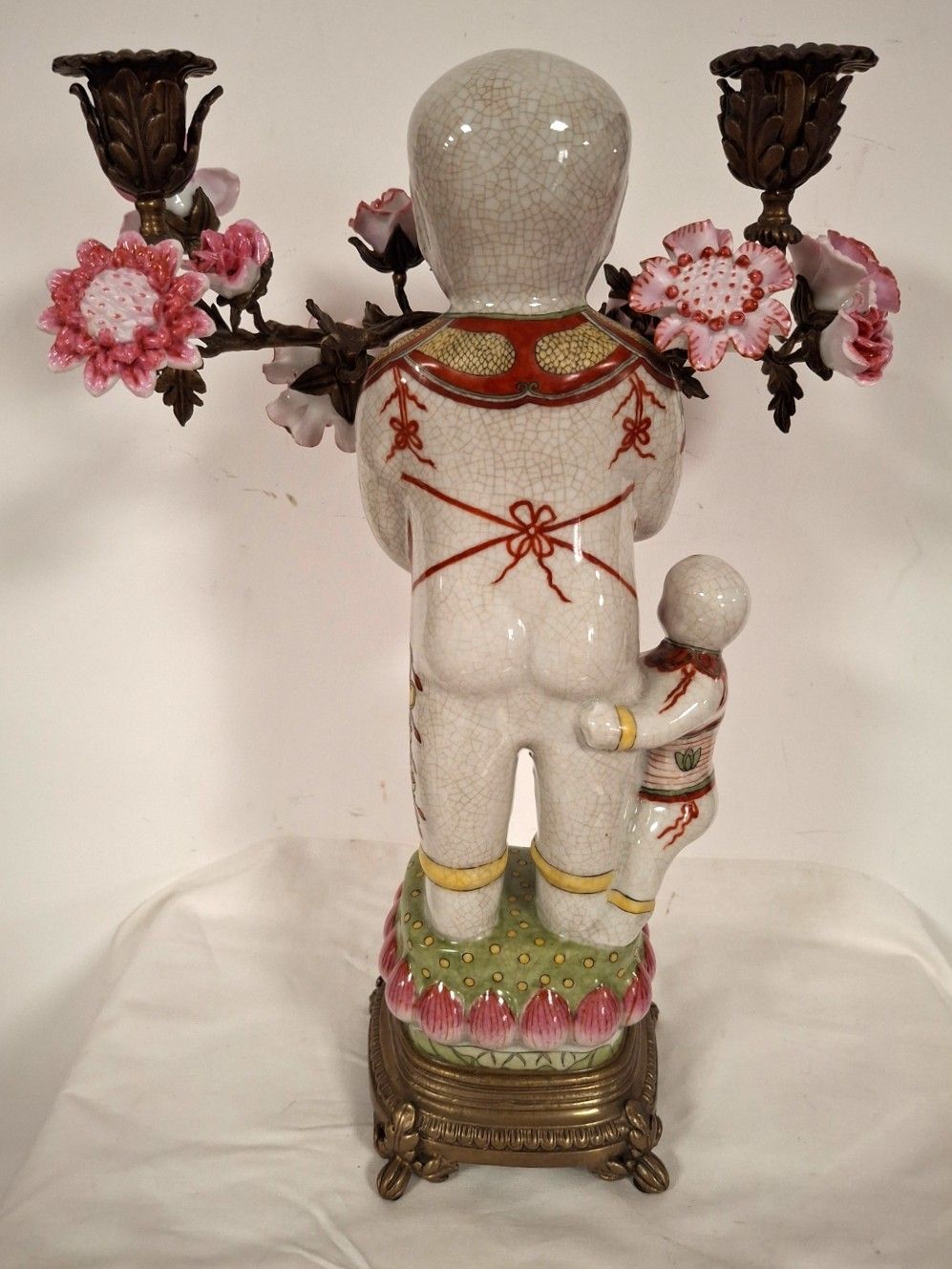 Ceramic torch decorated with a figure and a floral child Modern Asia (H 35 cm)