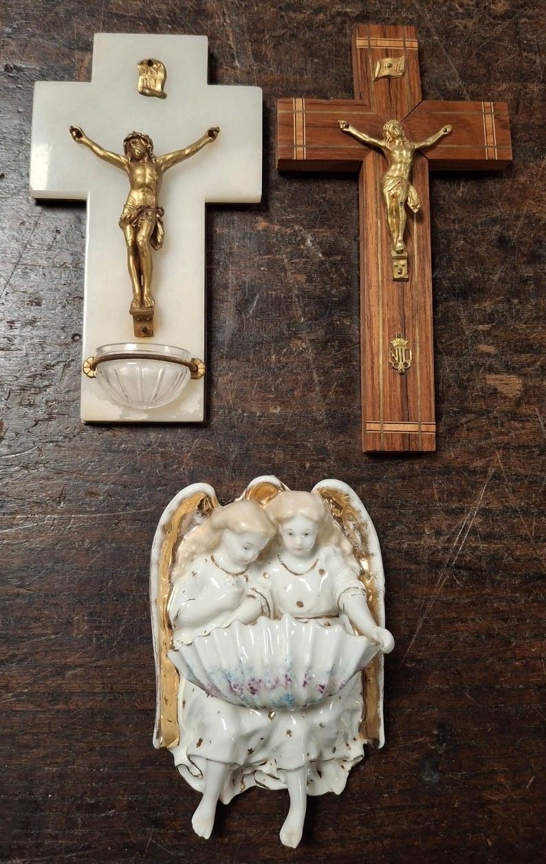 2 Crucifix and holy water font (H.14cm) porcelain