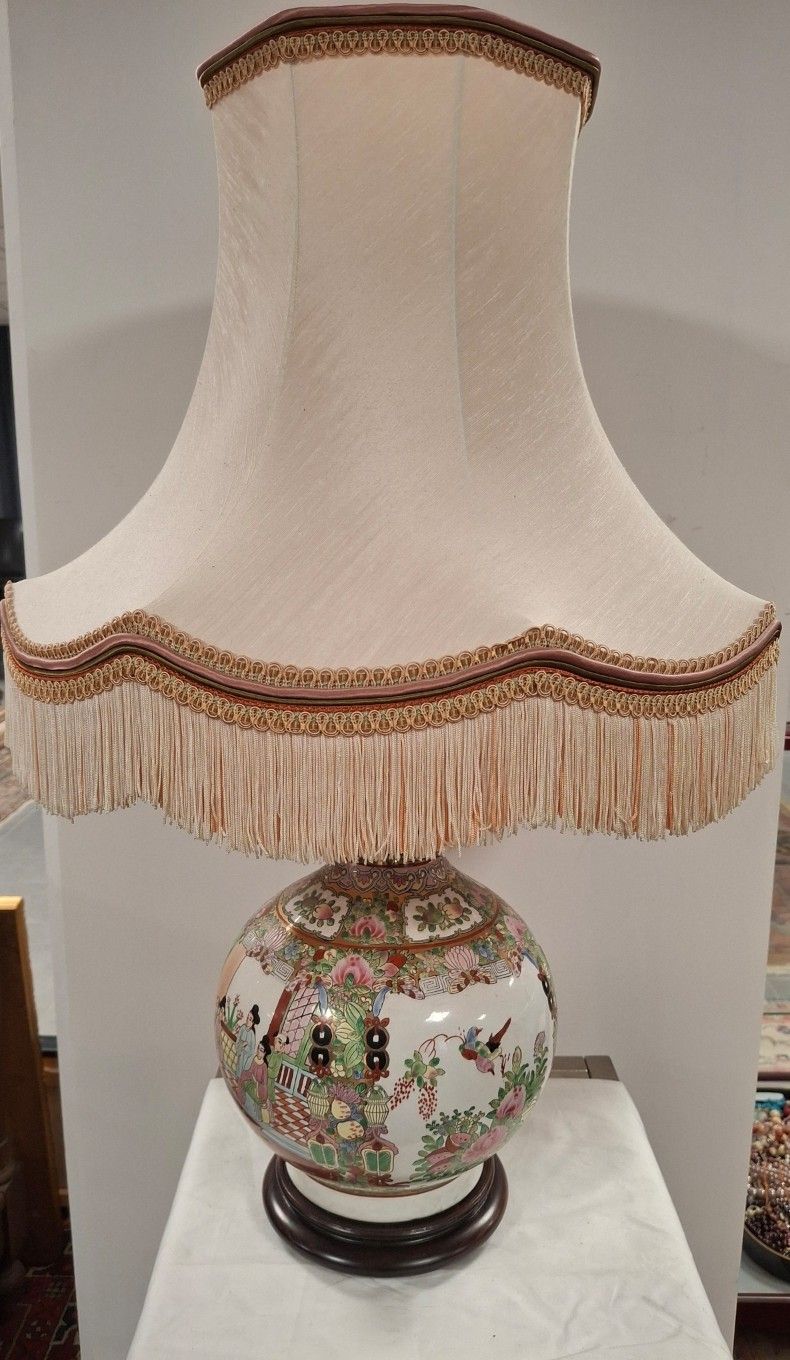 Asian Canton-style porcelain ball lamp (H tot 74 cm)