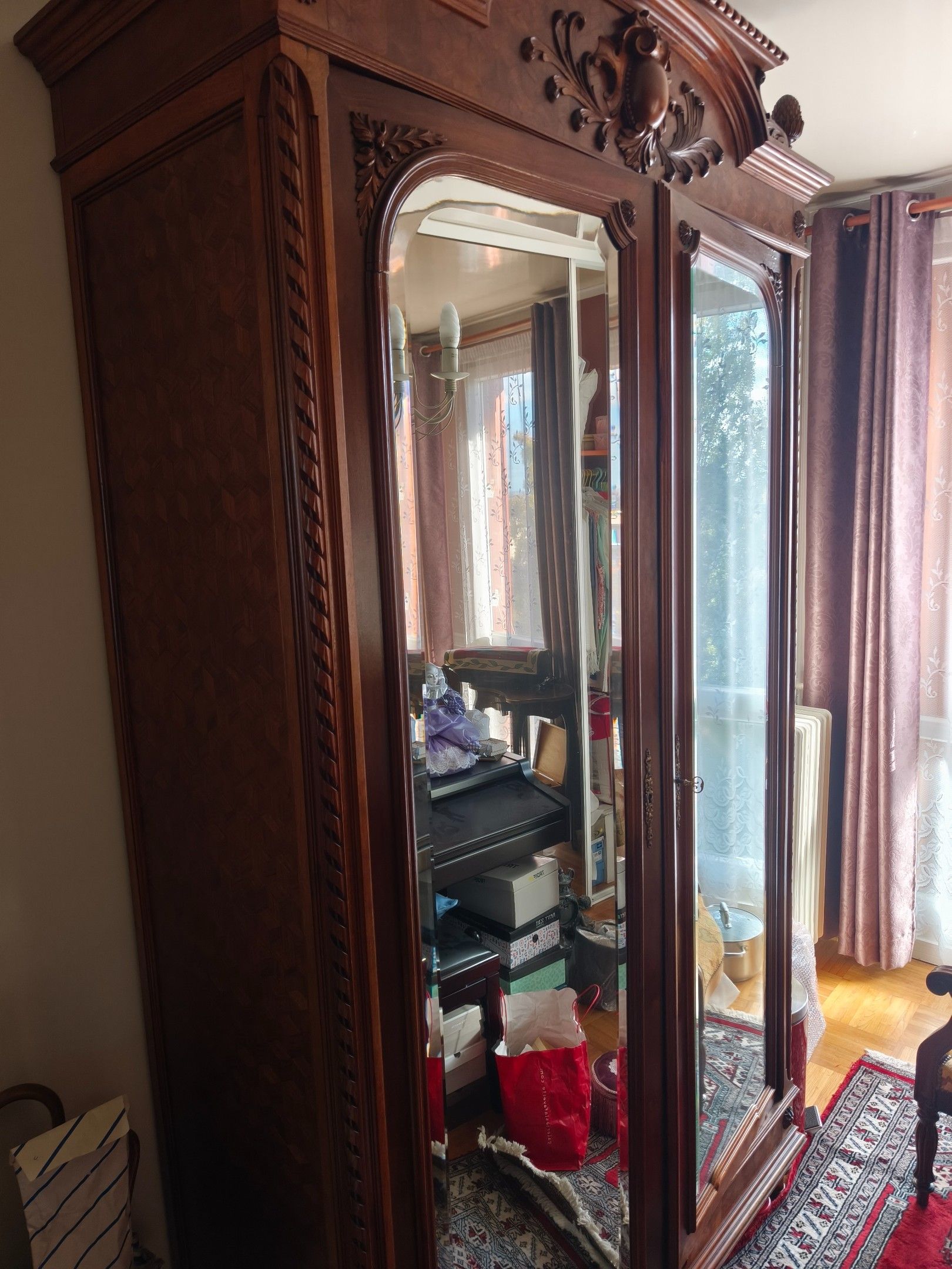 Large mirror cabinet 2 doors carved wood circa 1900 (1m26 / …