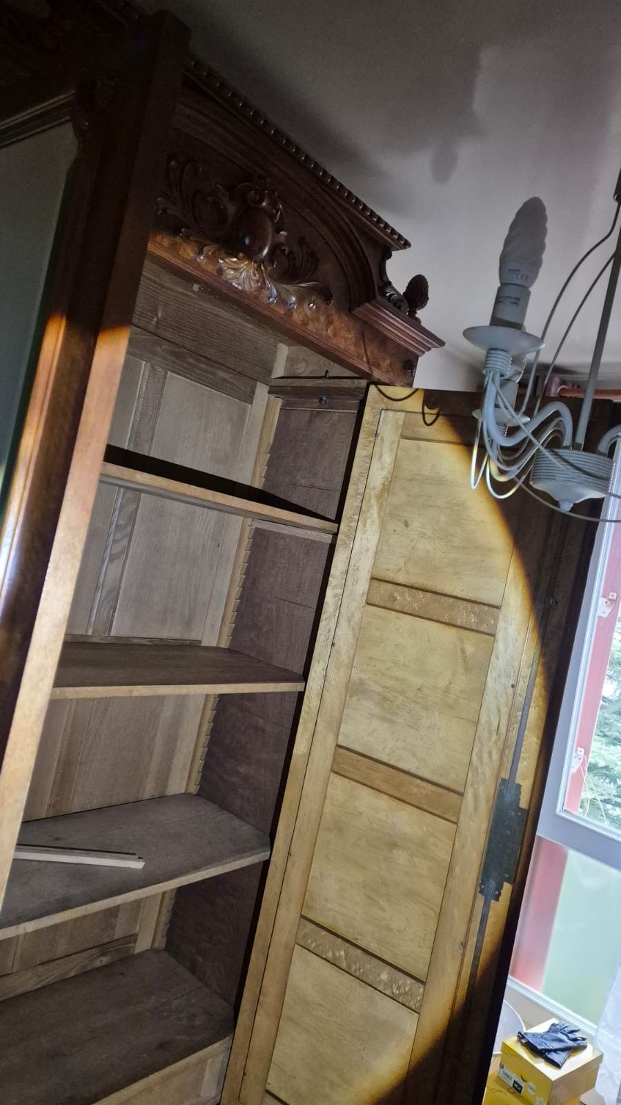 Large mirror cabinet 2 doors carved wood circa 1900 (1m26 / 0.50 x H 2m40) SALE ON DESIGNATION, at charge of removal in a flat in BEAUVAIS (60)