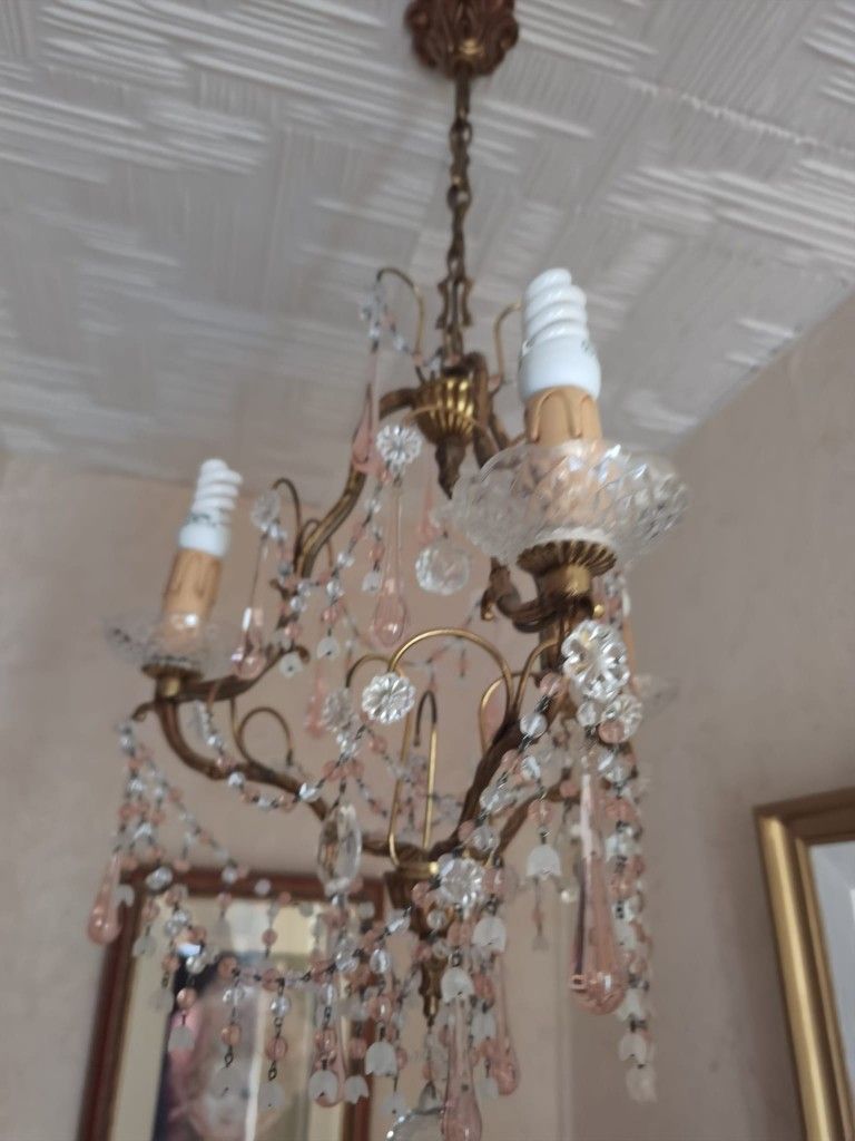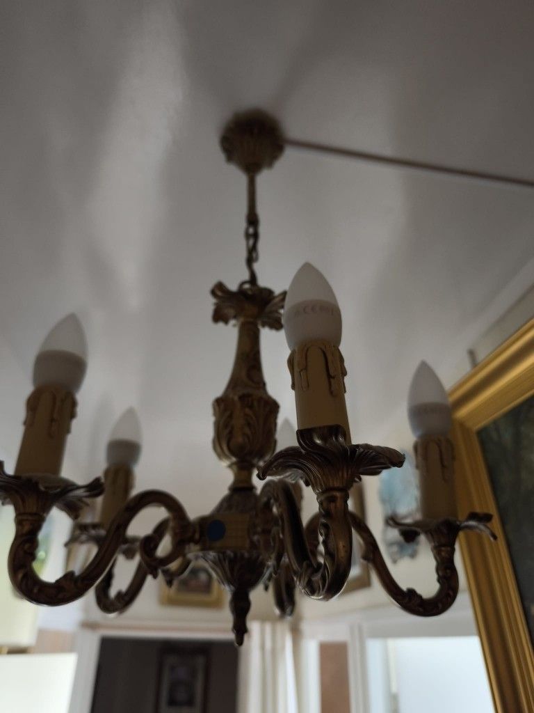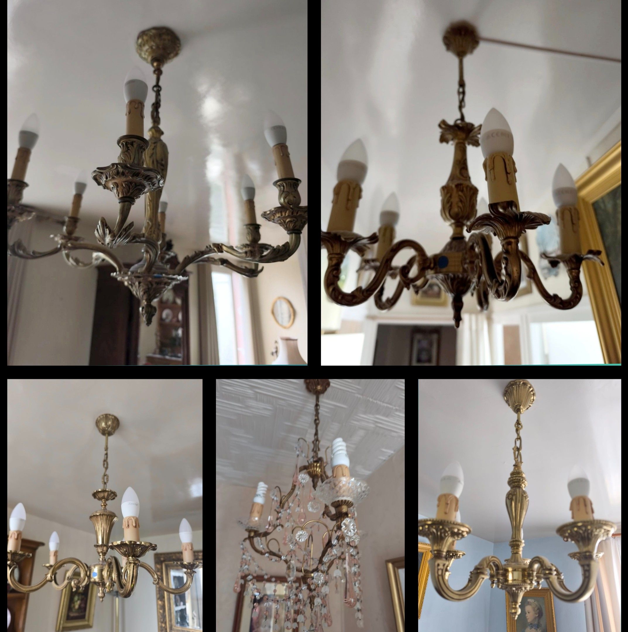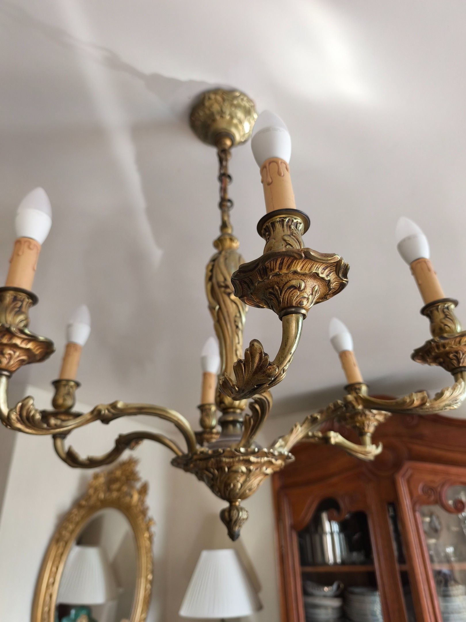 Rocaille gilded hanging lamp with 6 branches + 4 chandeliers (H 75 / 65/ 55 cm) / SALE BY DESIGNATION, to be collected from a flat in BEAUVAIS (60)