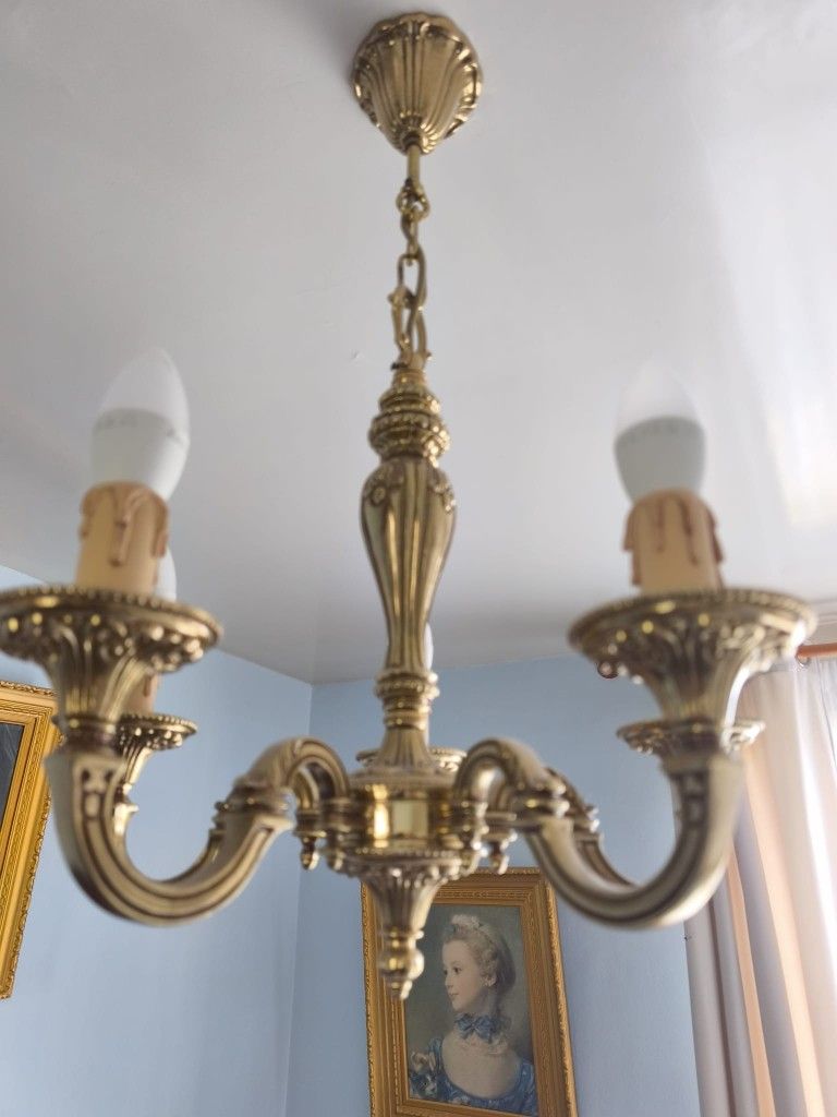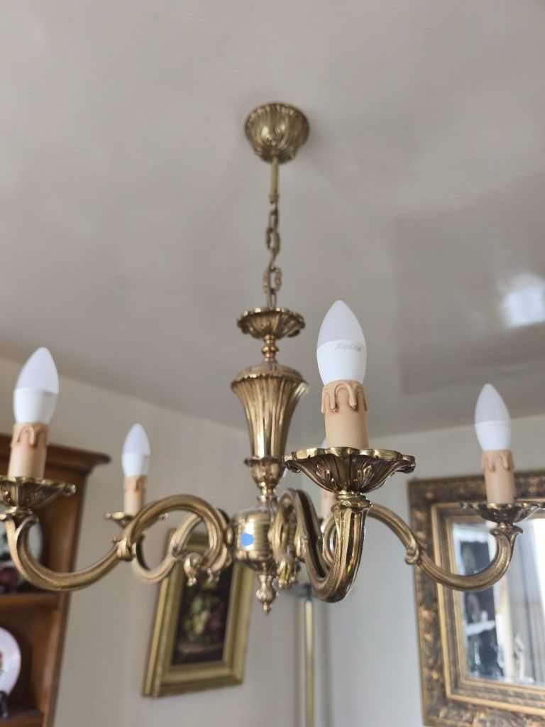 Rocaille gilded hanging lamp with 6 branches + 4 chandeliers…