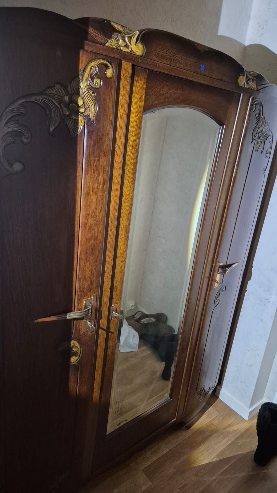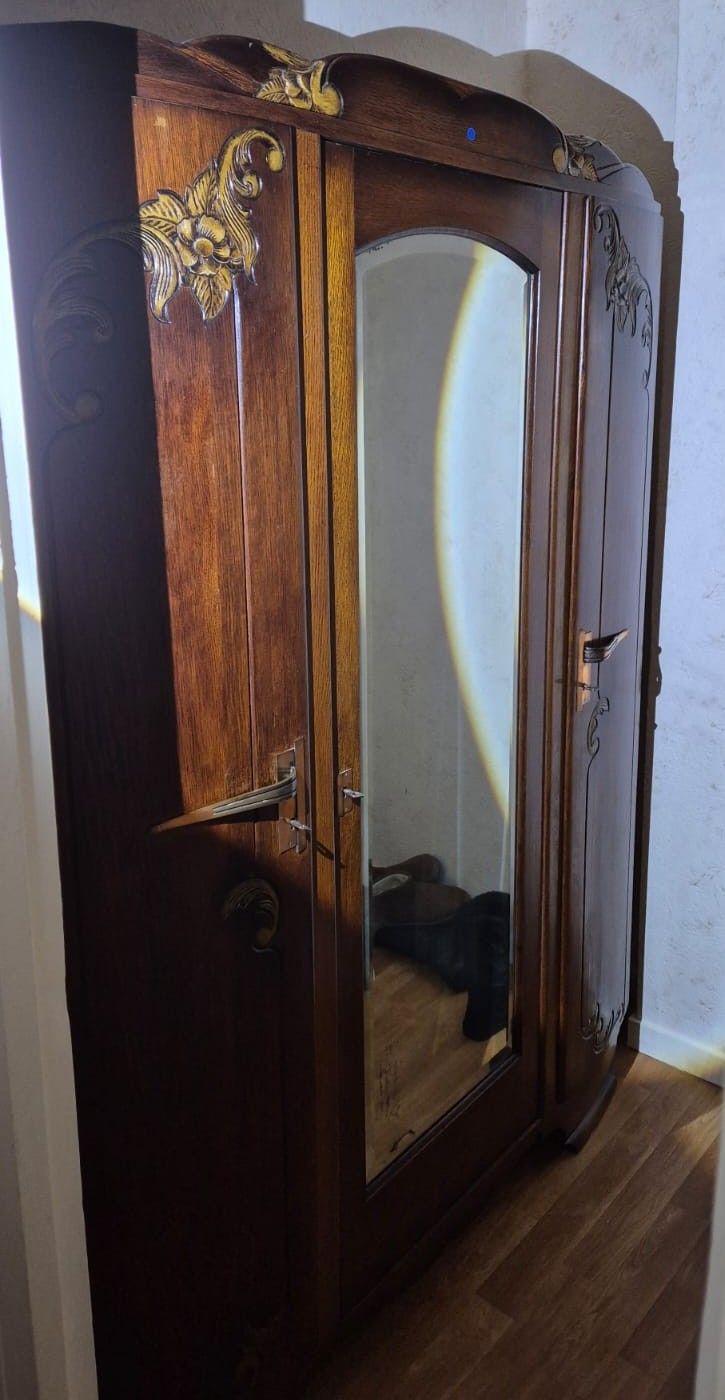 3-door mirror cabinet carved wood circa 1950 (1m40 x 0,55 x H 1m95) SALE ON DESIGNATION, at charge of removal in a flat in BEAUVAIS (60)