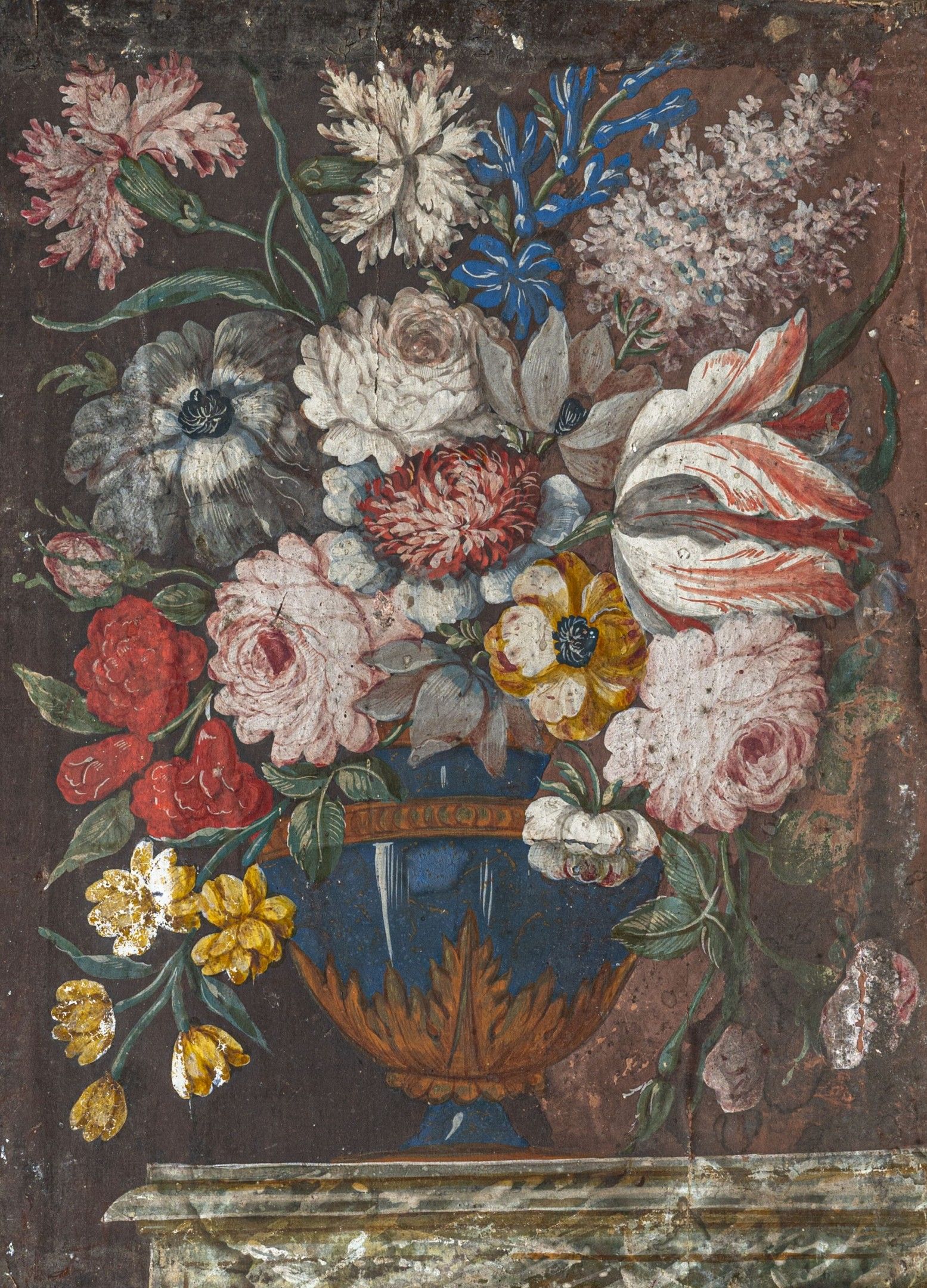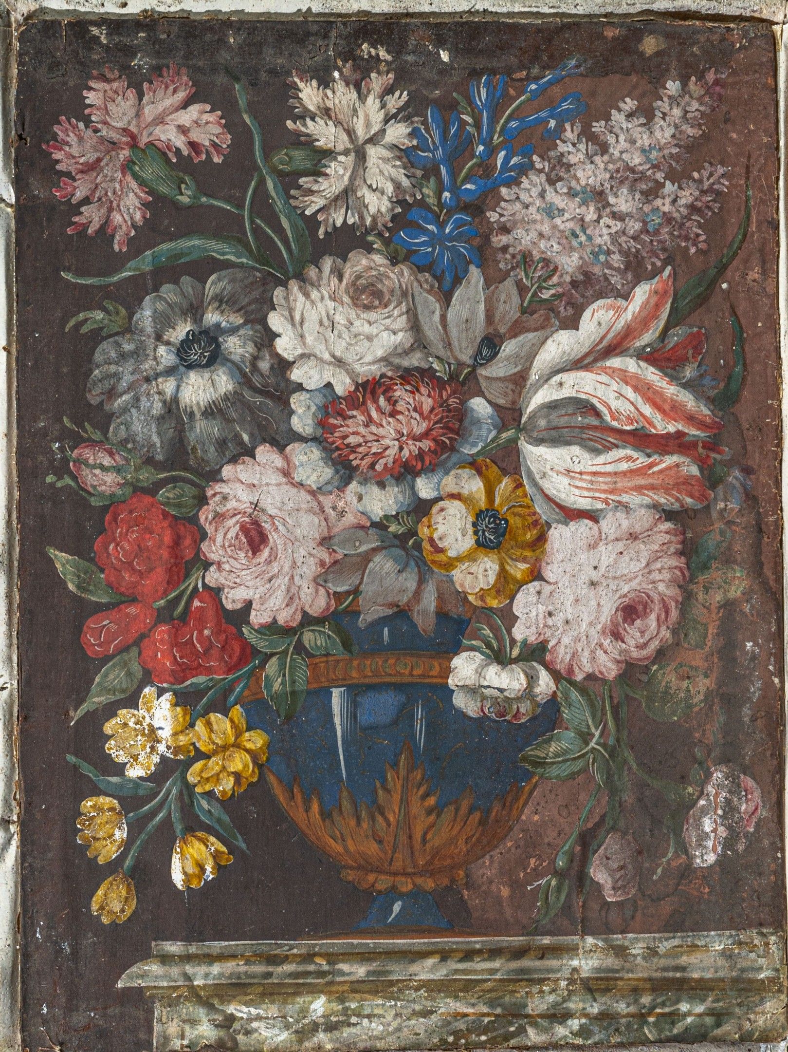 Flowering vase on an entablature