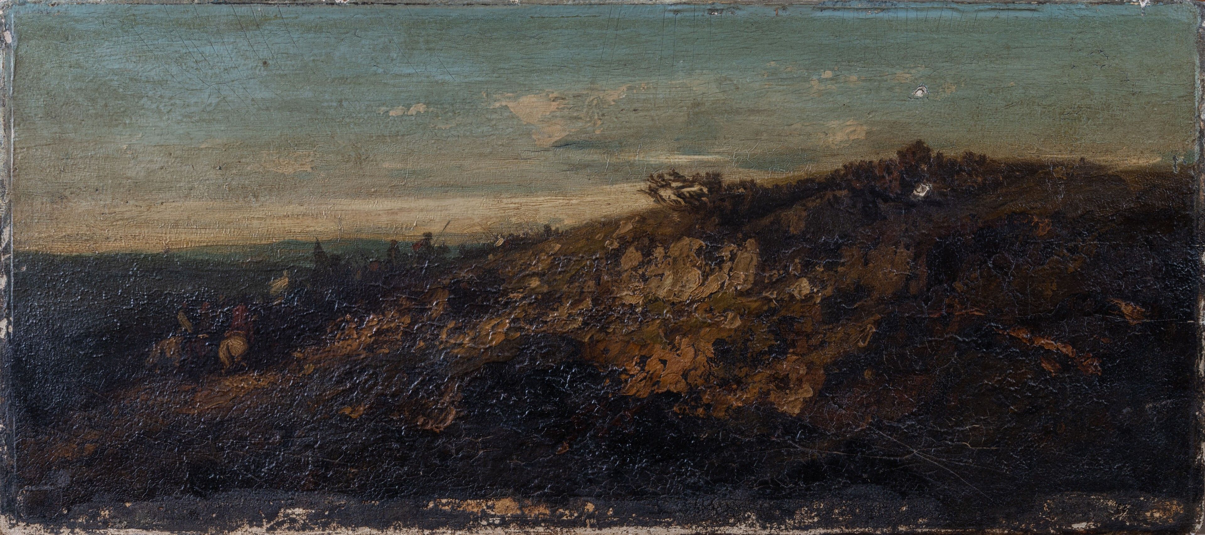 19th century FRENCH SCHOOL Horsemen, setting sun