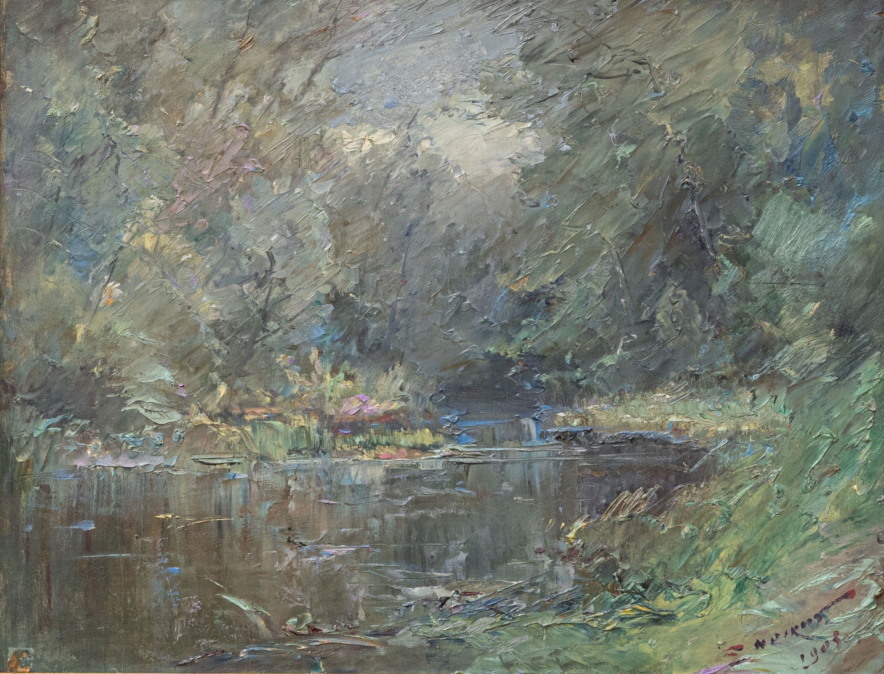 Oil on canvas, signed and dated "1908" lower right, titled and countersigned on verso