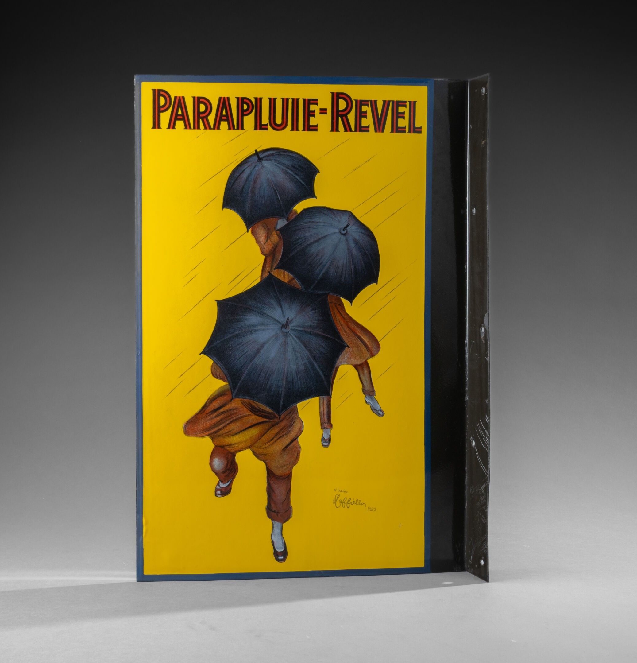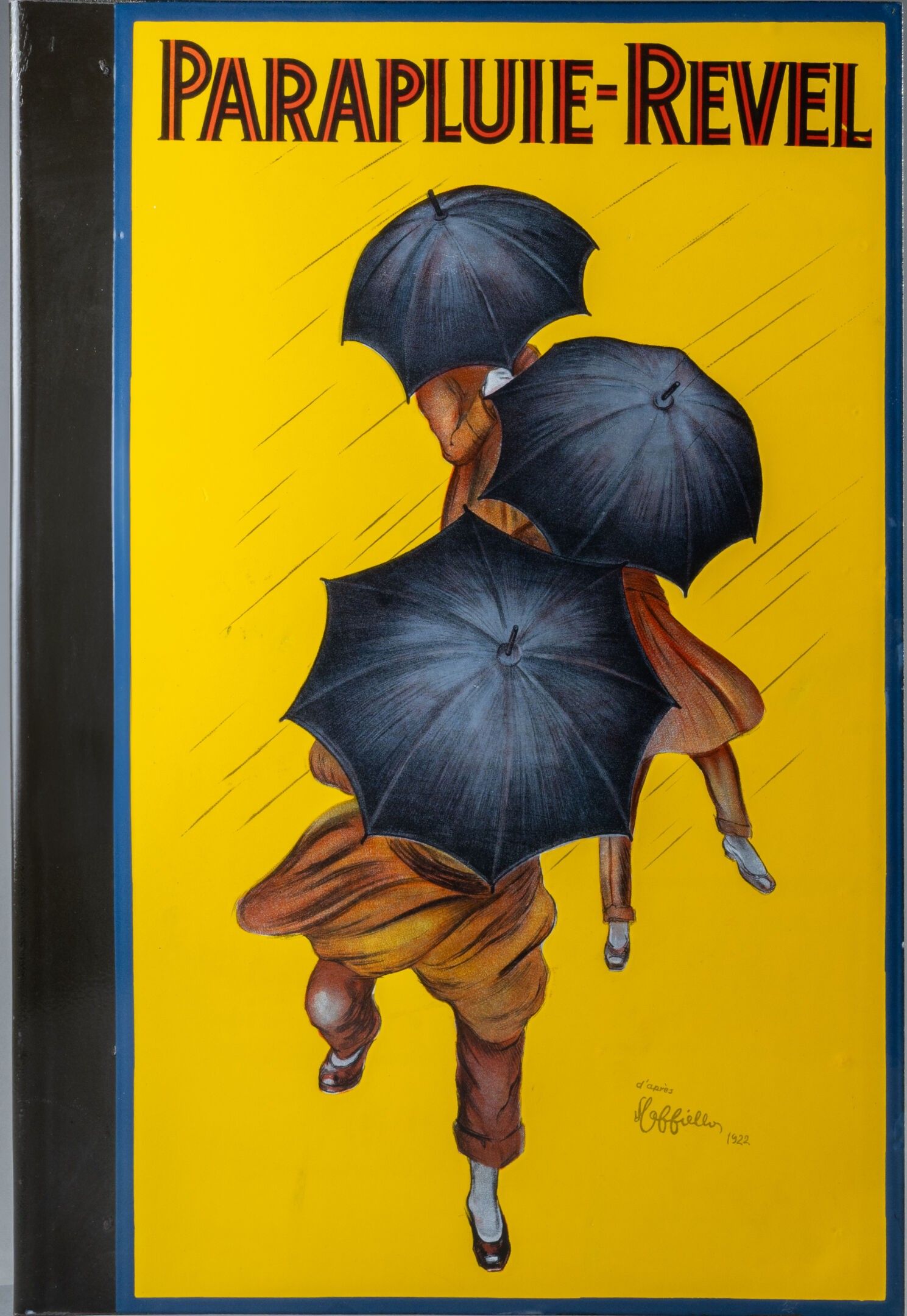 Double-sided enamelled plate on square, forming a sign, signed and dated 1922 in the design, using the design of the poster created in 1922