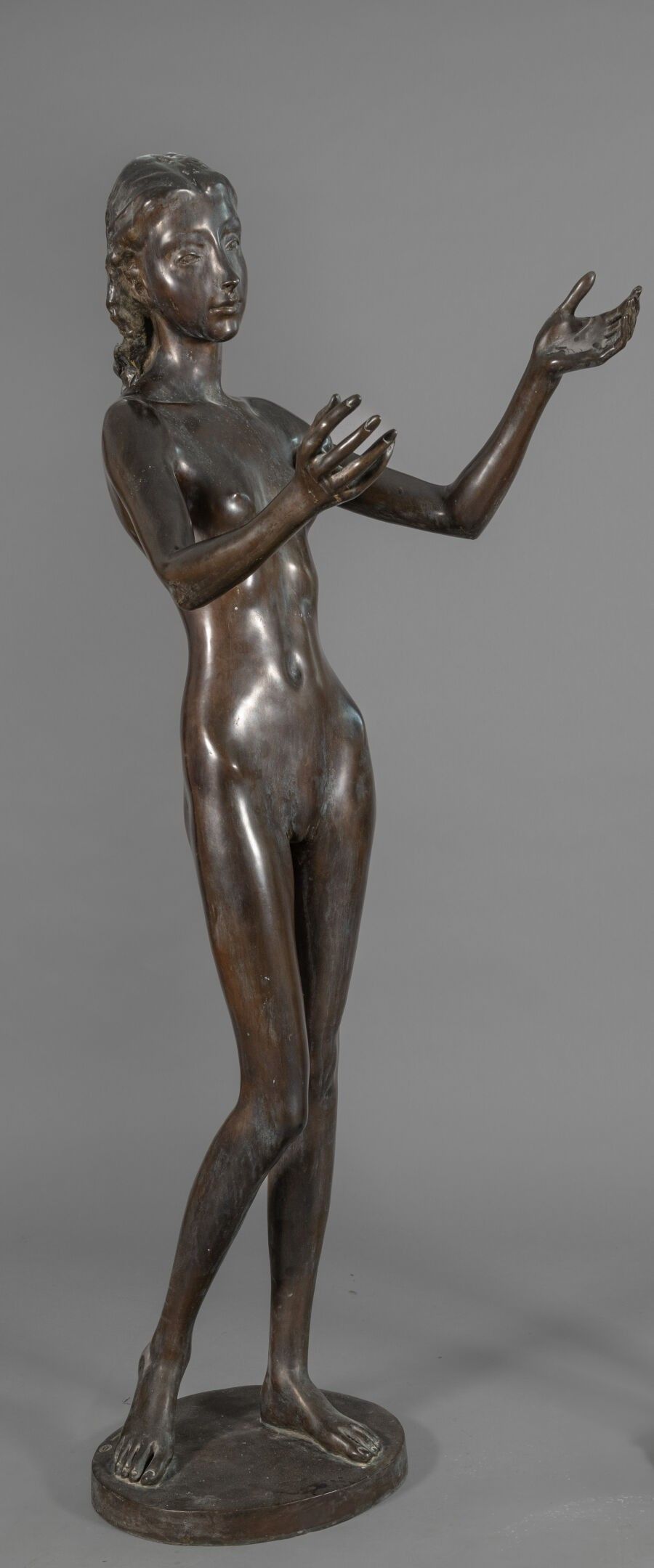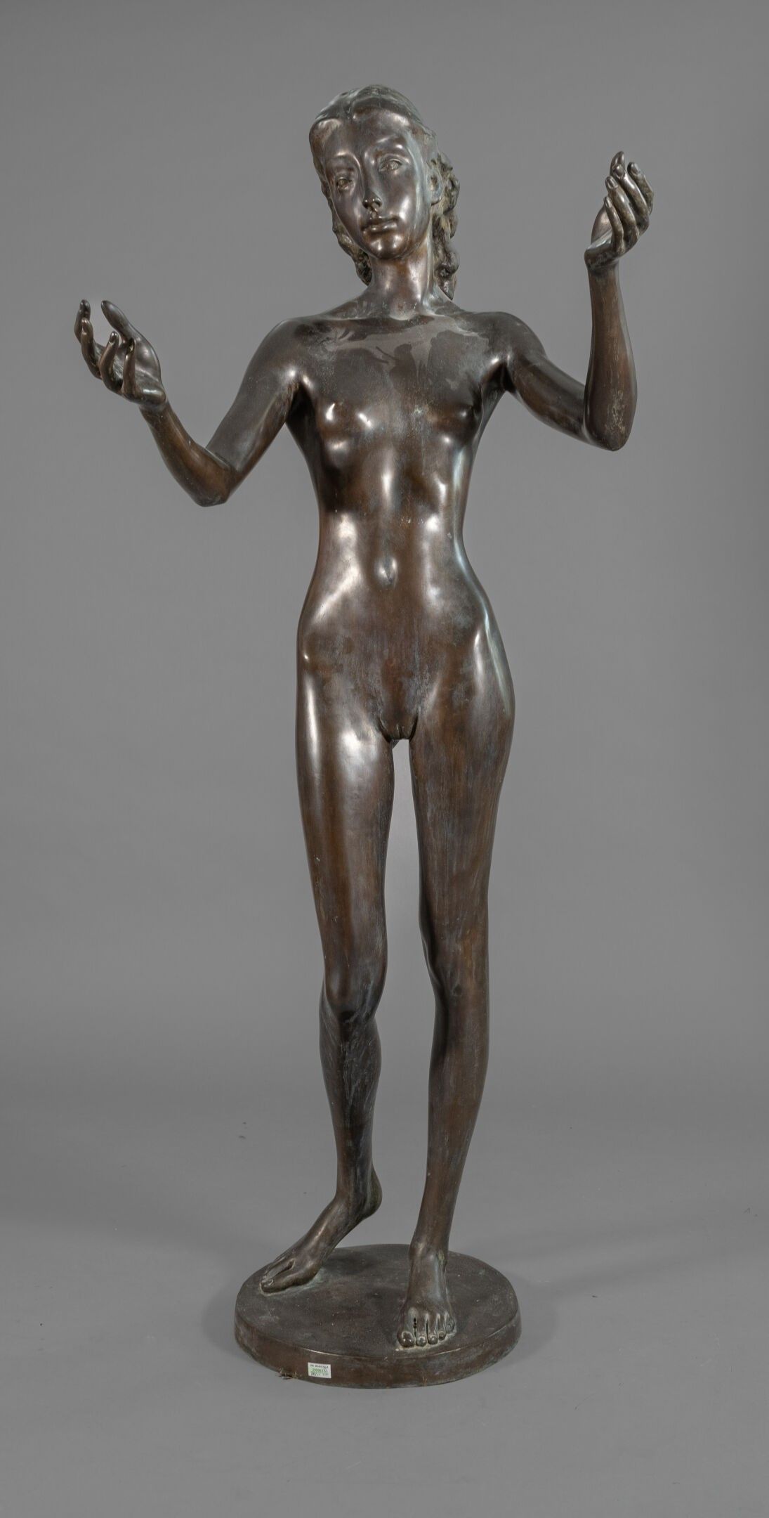Heinz SCHWARZ (1920-1994) Young girl standing with arms rais…