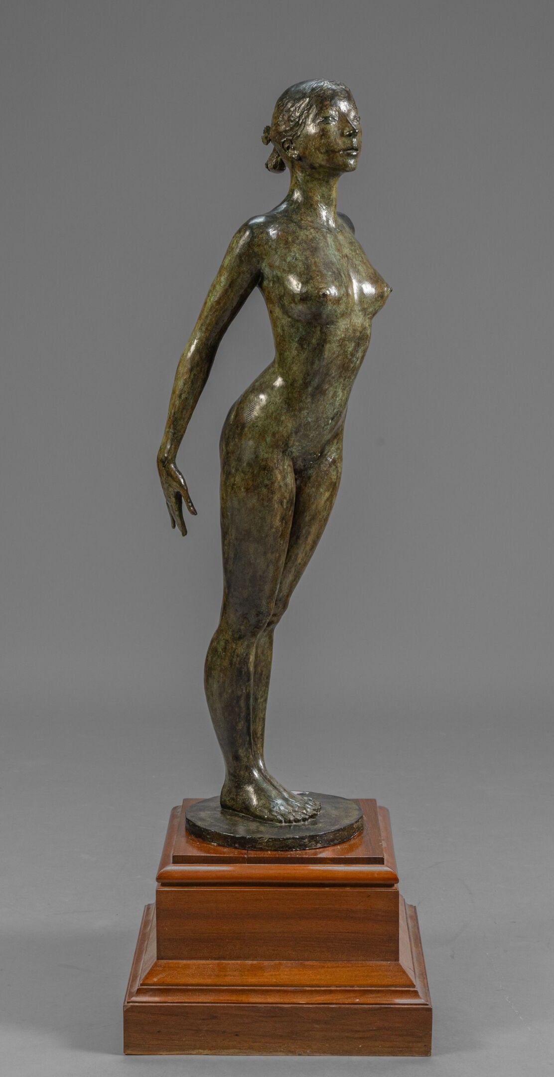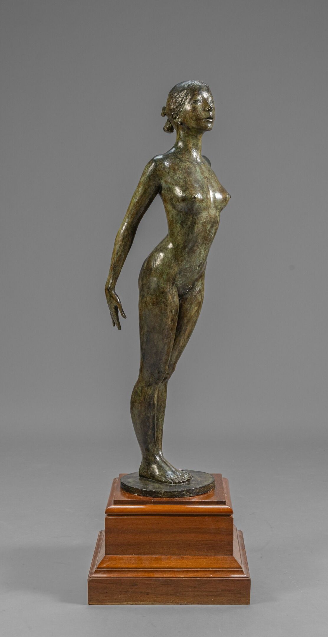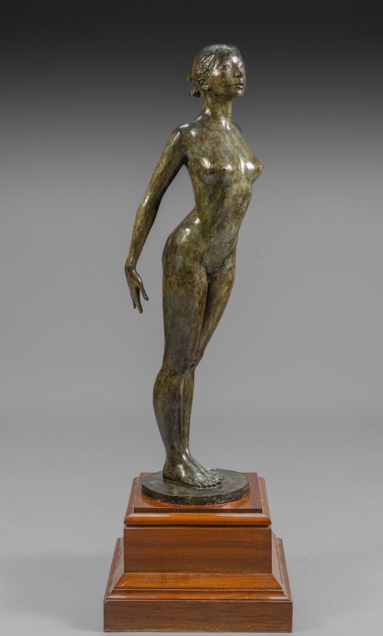 Green patina bronze proof, signed on the terrace and justified EA III/IV and bearing the founder's stamp "Delval, Cire perdue" on the terrace