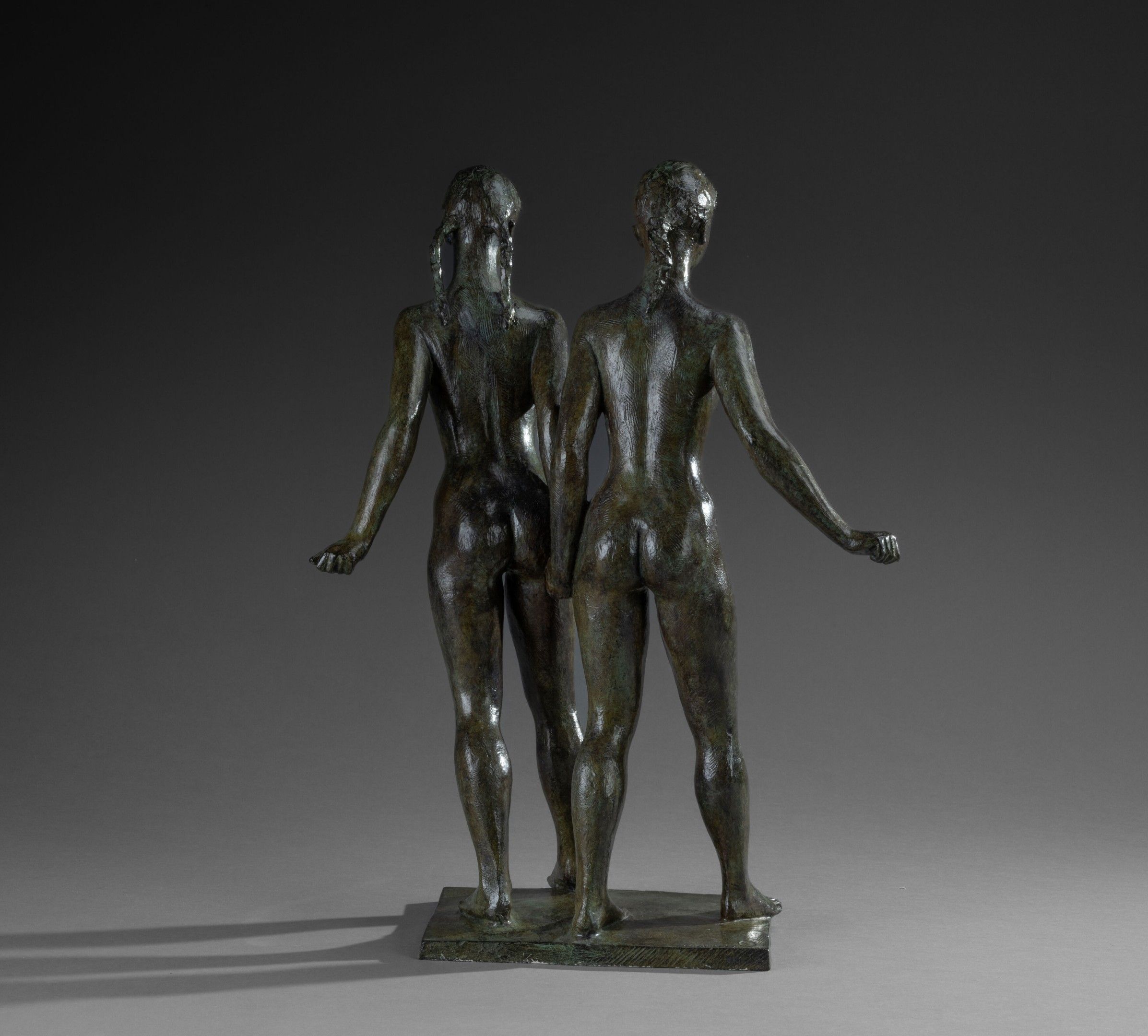 Green patina bronze proof, signed, justified 1/8 and bearing the founder's stamp "Delval, Cire perdue" on the terrace