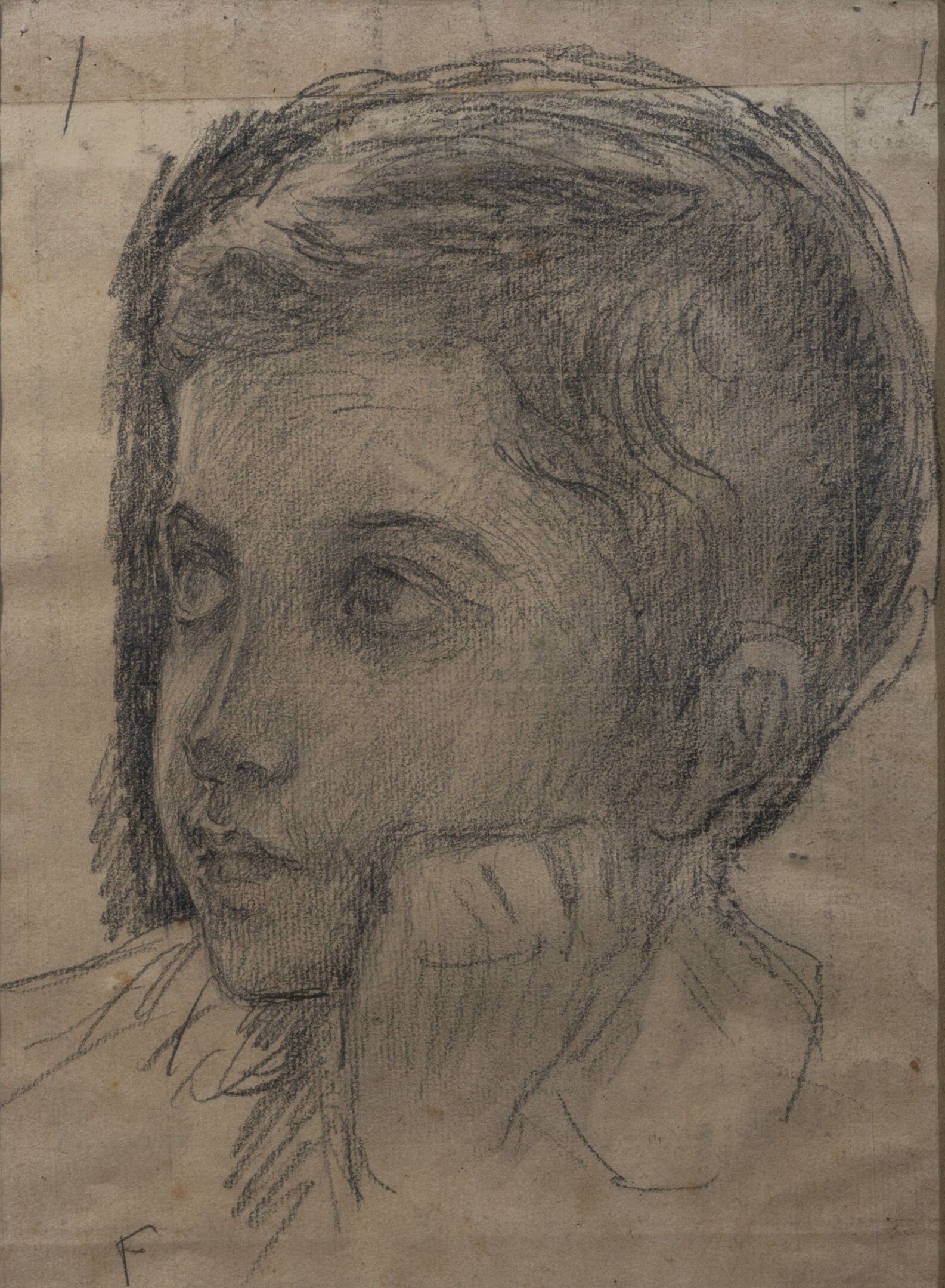 Graphite drawing on two sheets, with wet signature stamp lower right (partially faded)