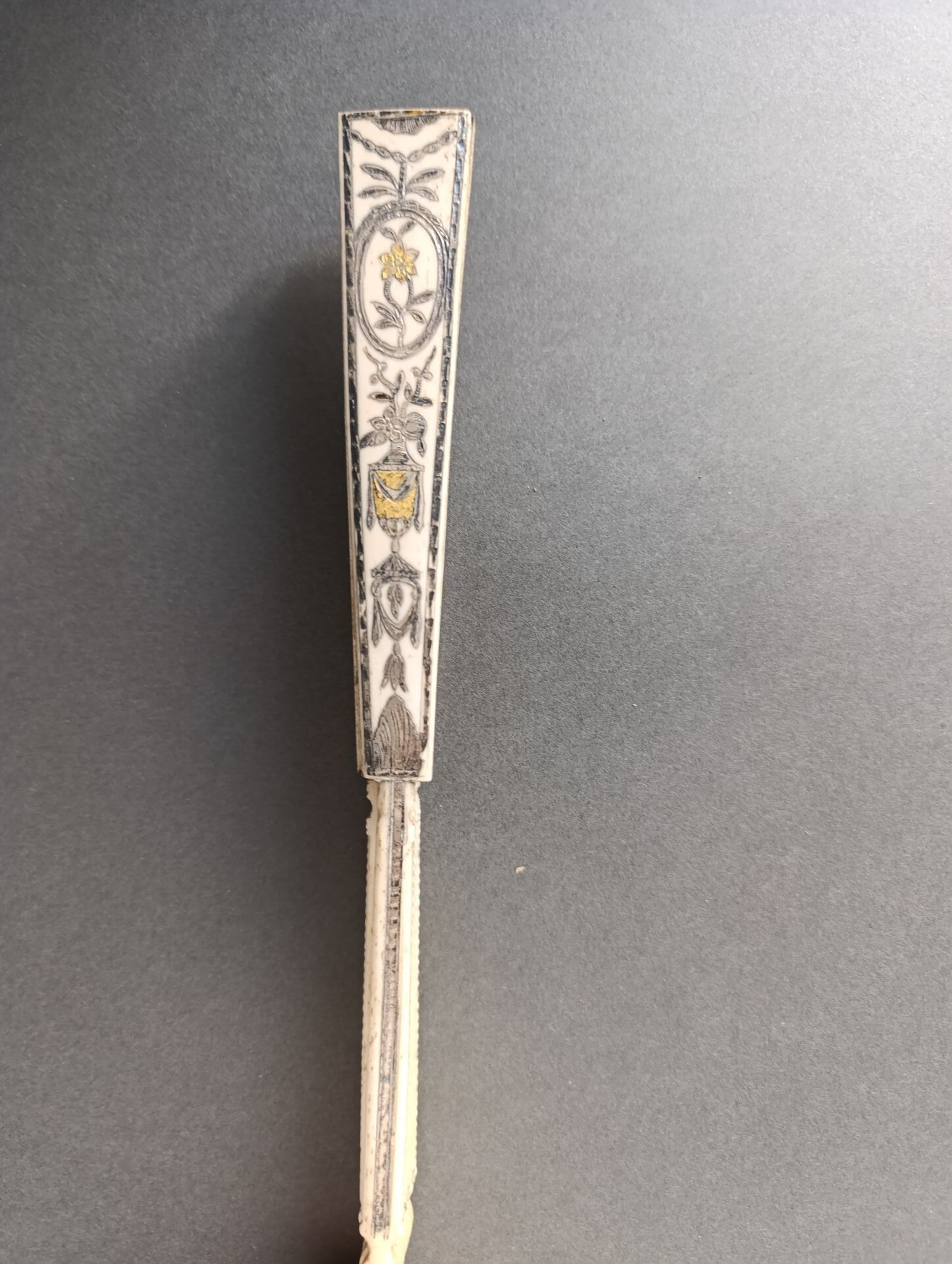 Bone mount, pierced, engraved and enhanced with gold foil.