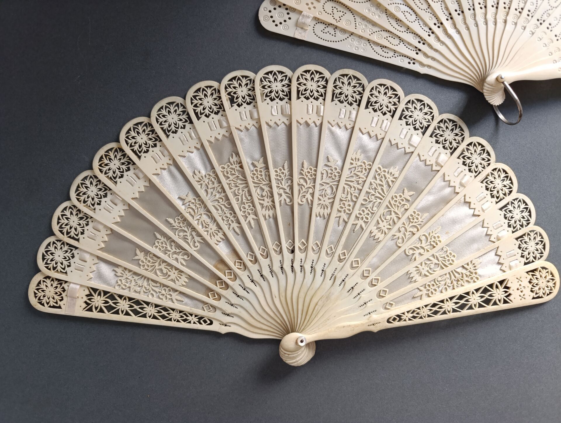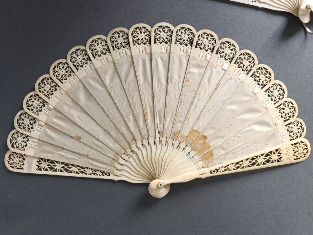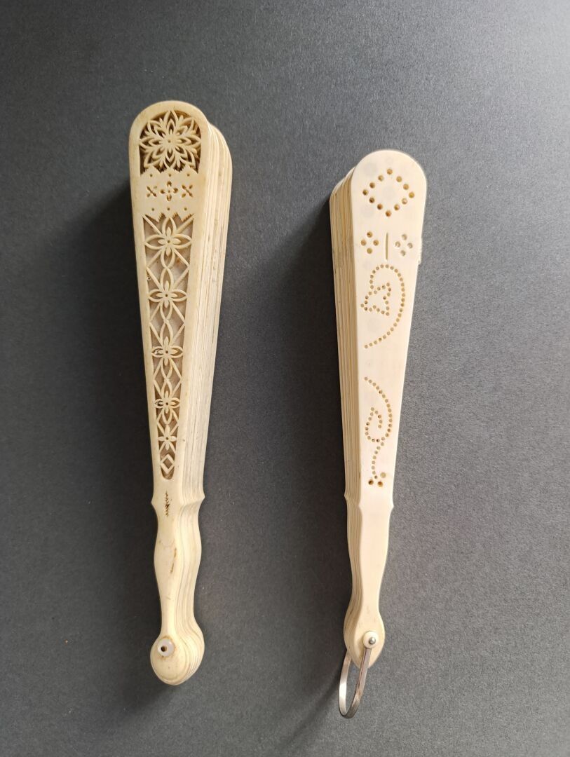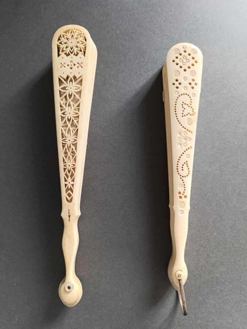 Two fans, of the broken bone type, finely re-drilled mechanically using the process invented by a craftsman from the Oise region called Baude.