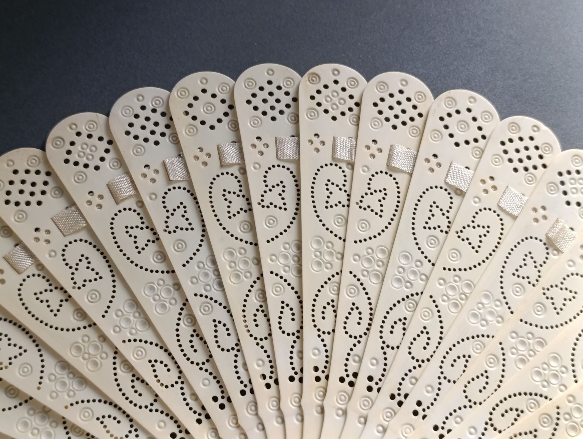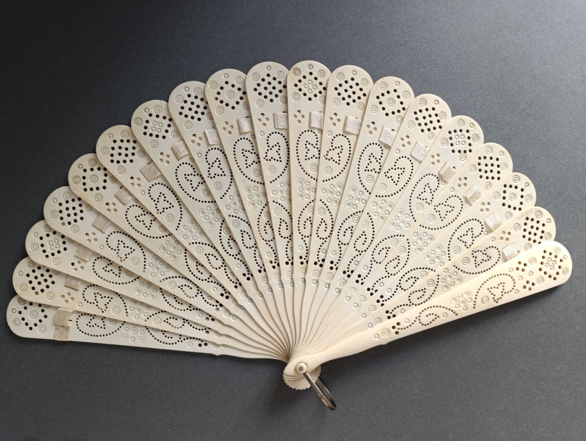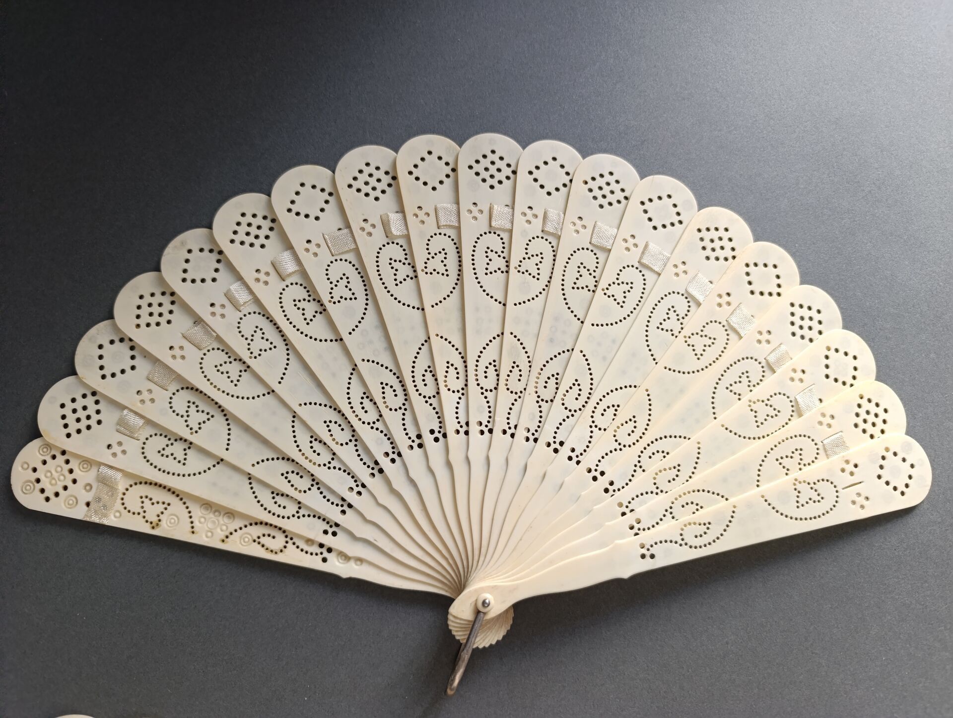 Two fans, of the broken bone type, finely re-drilled mechanically using the process invented by a craftsman from the Oise region called Baude.