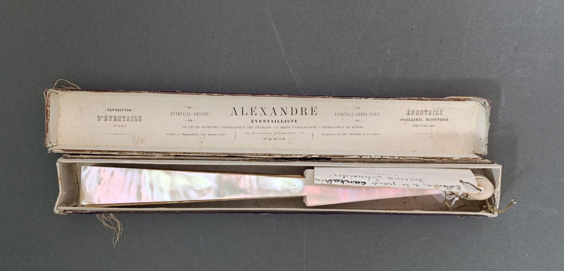 Accompanied by a handwritten card stating "Fan of the great singer Hortense Schneider", and tapuscript "Fan having belonged to 'La Soubise', great courtesan of the 3rd Empire (sic)". A very famous singer of the Second Empire, Hortense Schneider (1833-1920) was also a great benefactor of the Orphelinat des Arts.