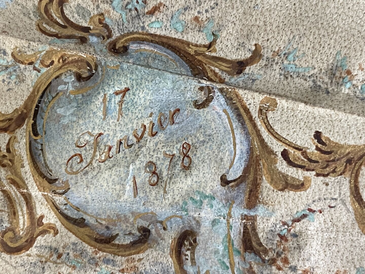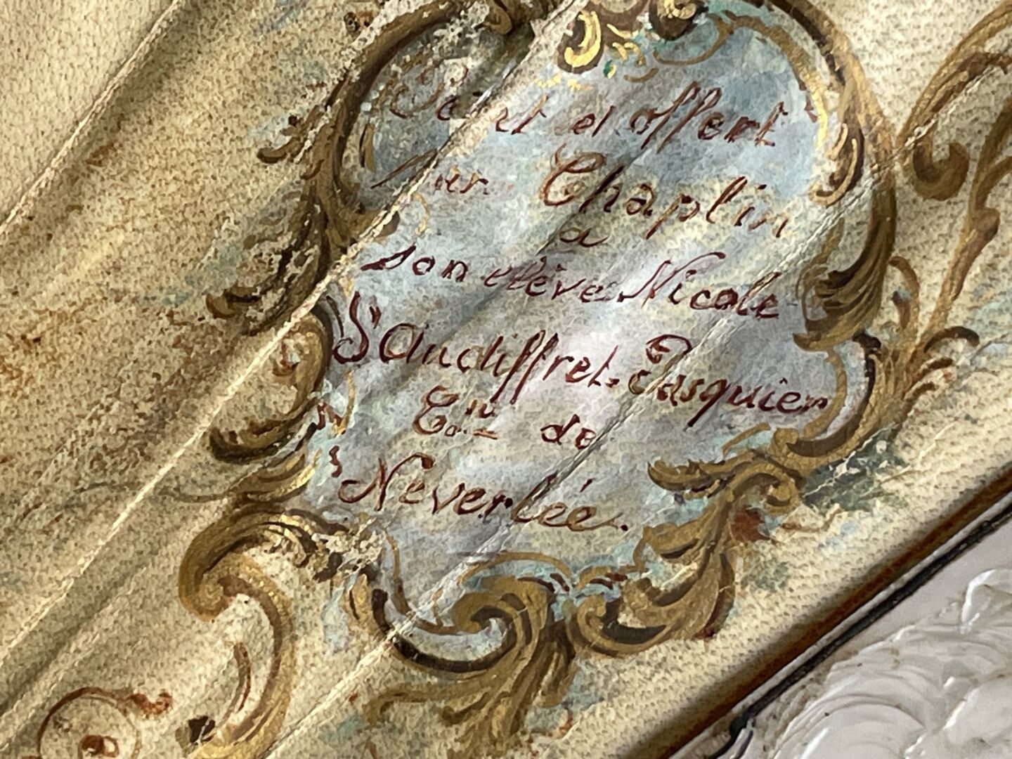The reverse bears the date "17 January 1878" in a label, and a second label indicating its provenance "Painted and offered /by Chaplin/ to /his pupil Nicole/ d'Audiffret-Pasquier/ Bnne de/ Neverlée". In the centre, the coats of arms of the couple. Nicole d'Audiffret-Pasquier (1858-1937) married Philippe de Néverlée, baron de Néverlée (1848-1891) in Paris in January 1878.