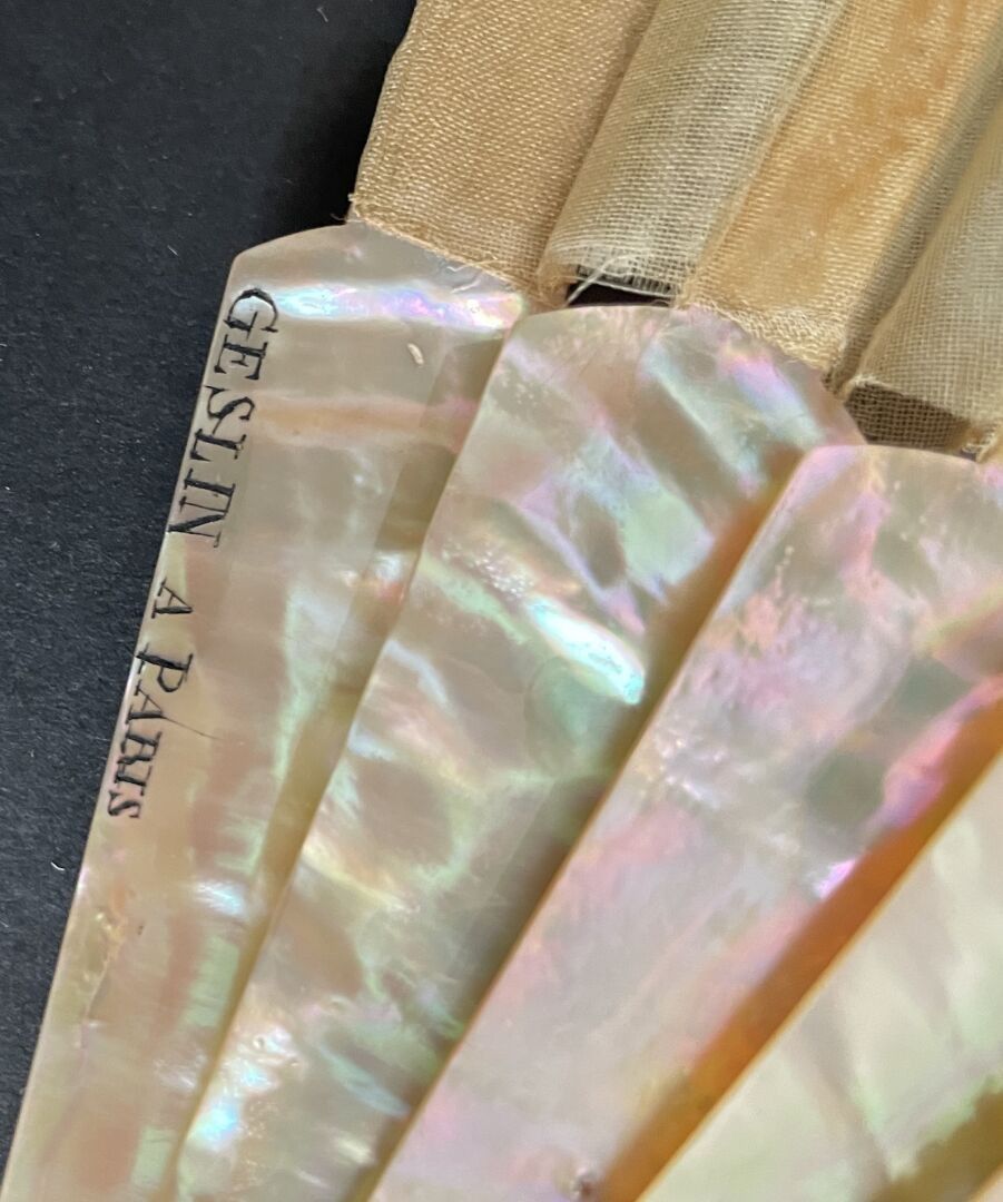 Goldfish mother-of-pearl mounting, engraved, silvered and gilded. Engraved "Geslin à Paris" on the reverse. Bélière. Height 30.5 cm (accidents)