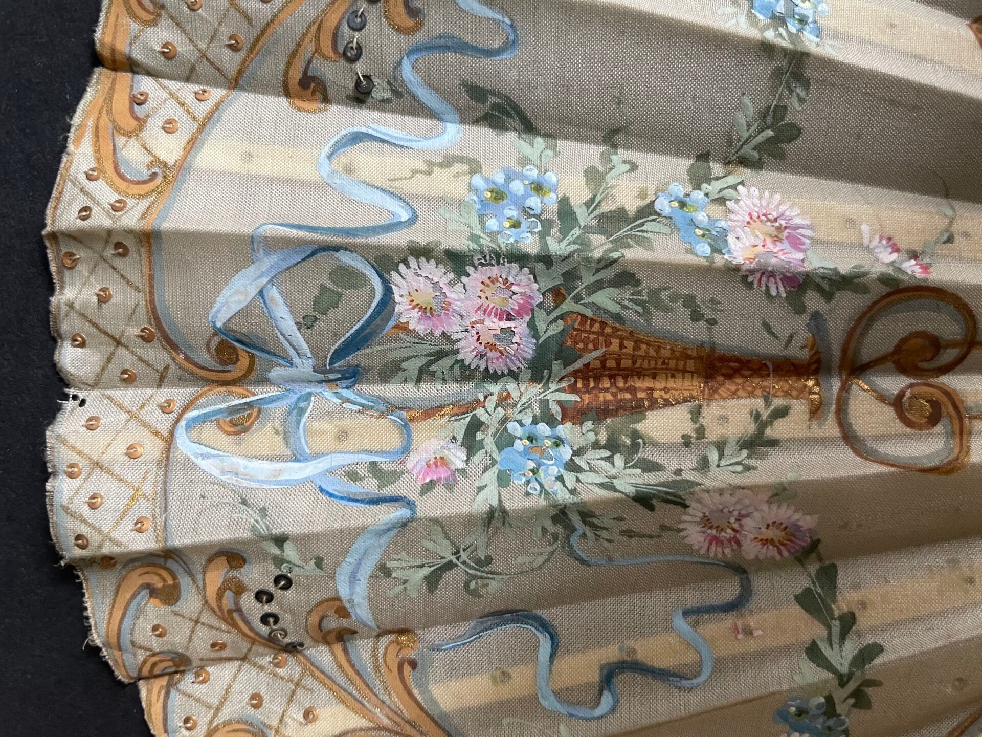 The leaf painted with a vase of flowers and gilded foliage. Bone frame. Bracket and tassel.
