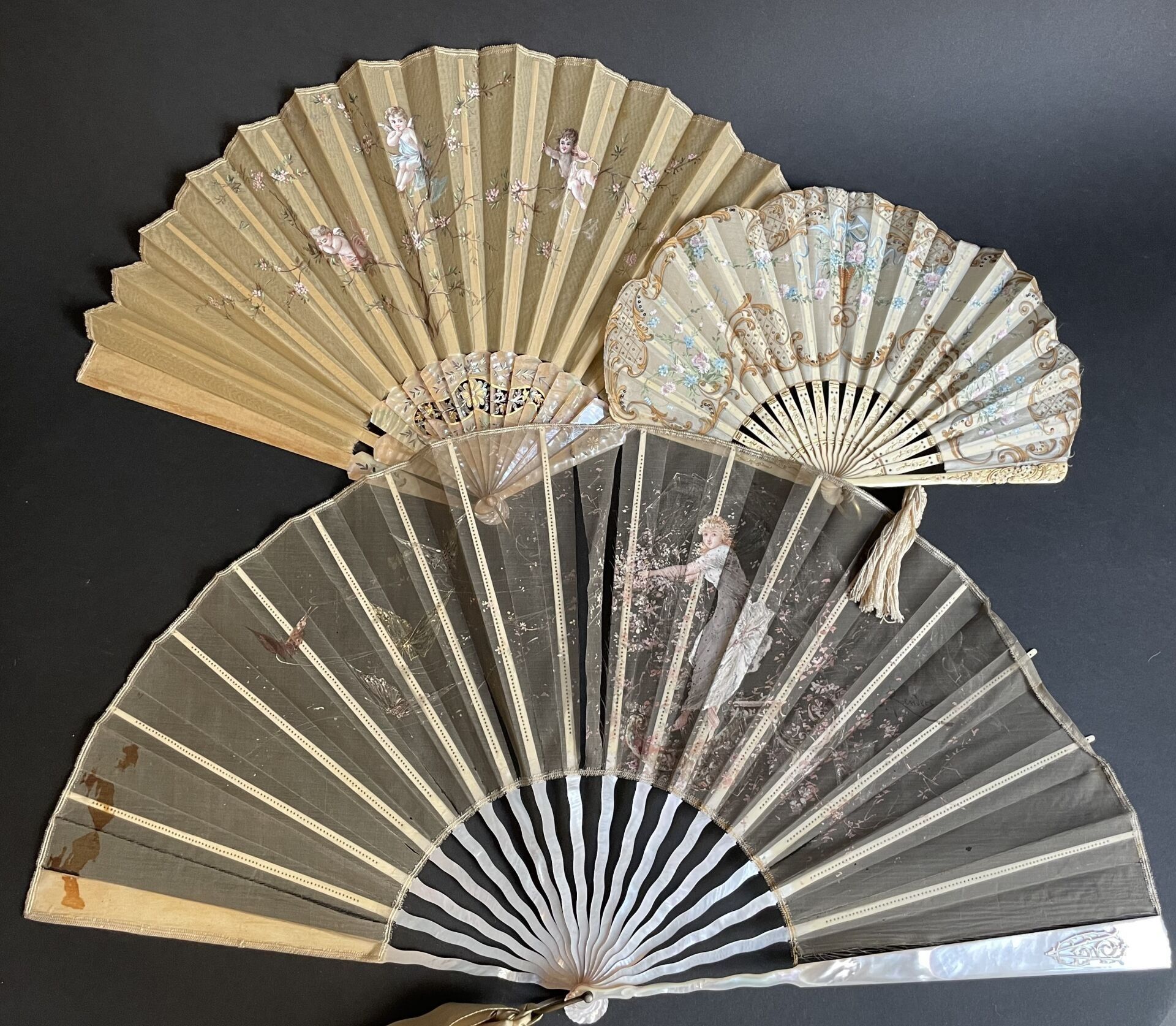 The leaf painted with three loves playing or sleeping on flowering branches. Signed "C. Rimond".