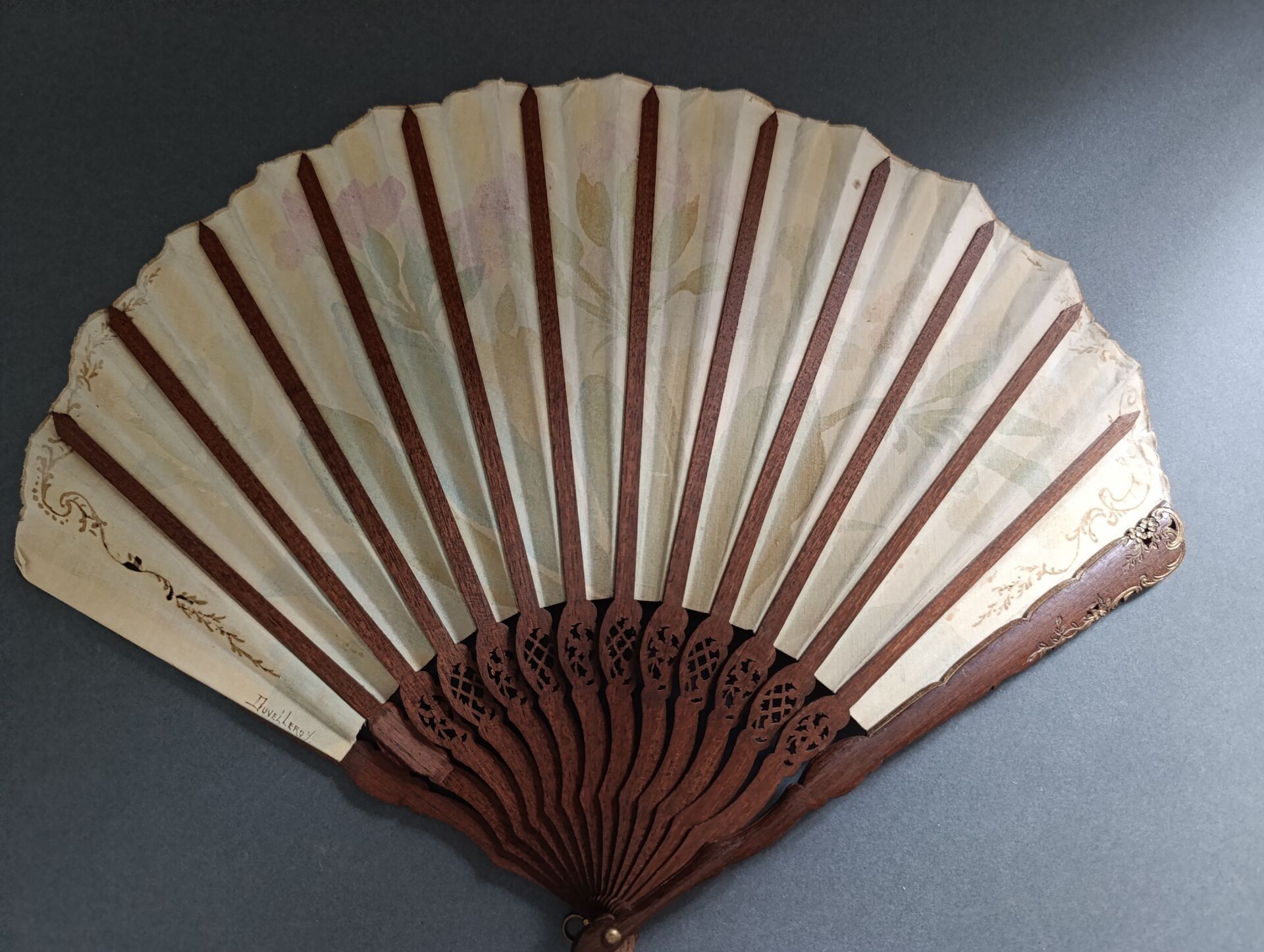 Signed on the reverse by the Paris fan maker "Duvelleroy".