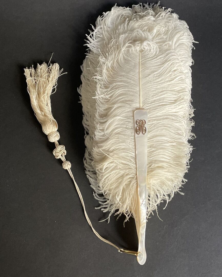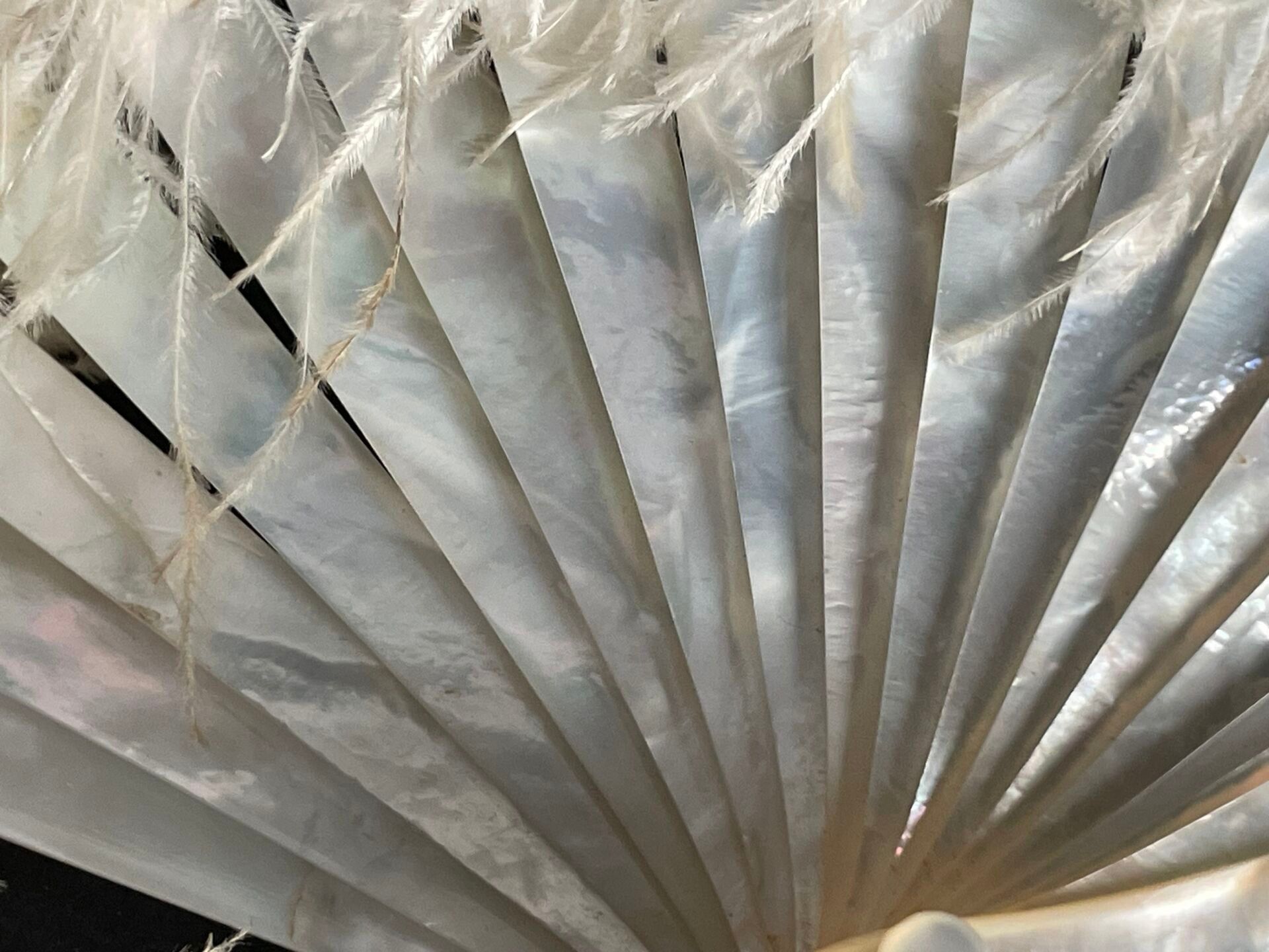 White mother-of-pearl frame. Figure on the plume. Brace.