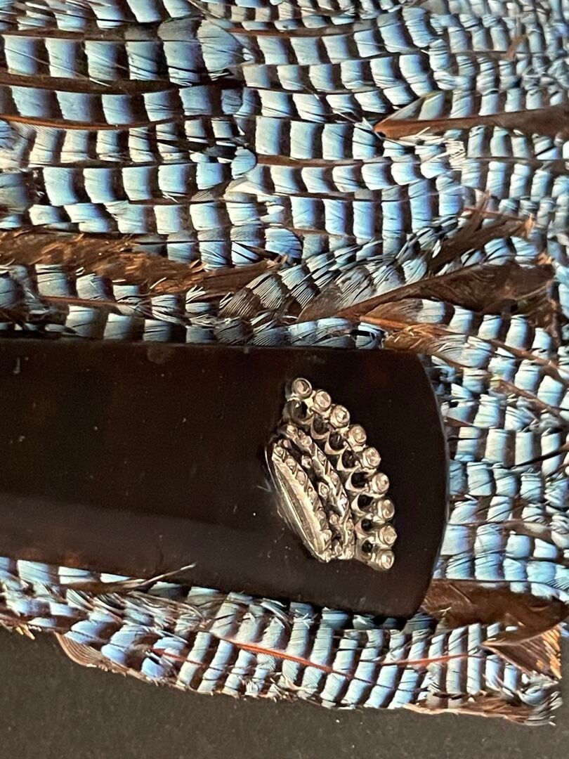 Brown tortoiseshell frame. Crown enhanced with diamonds on the plume.