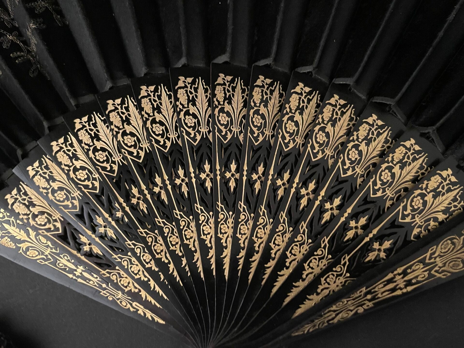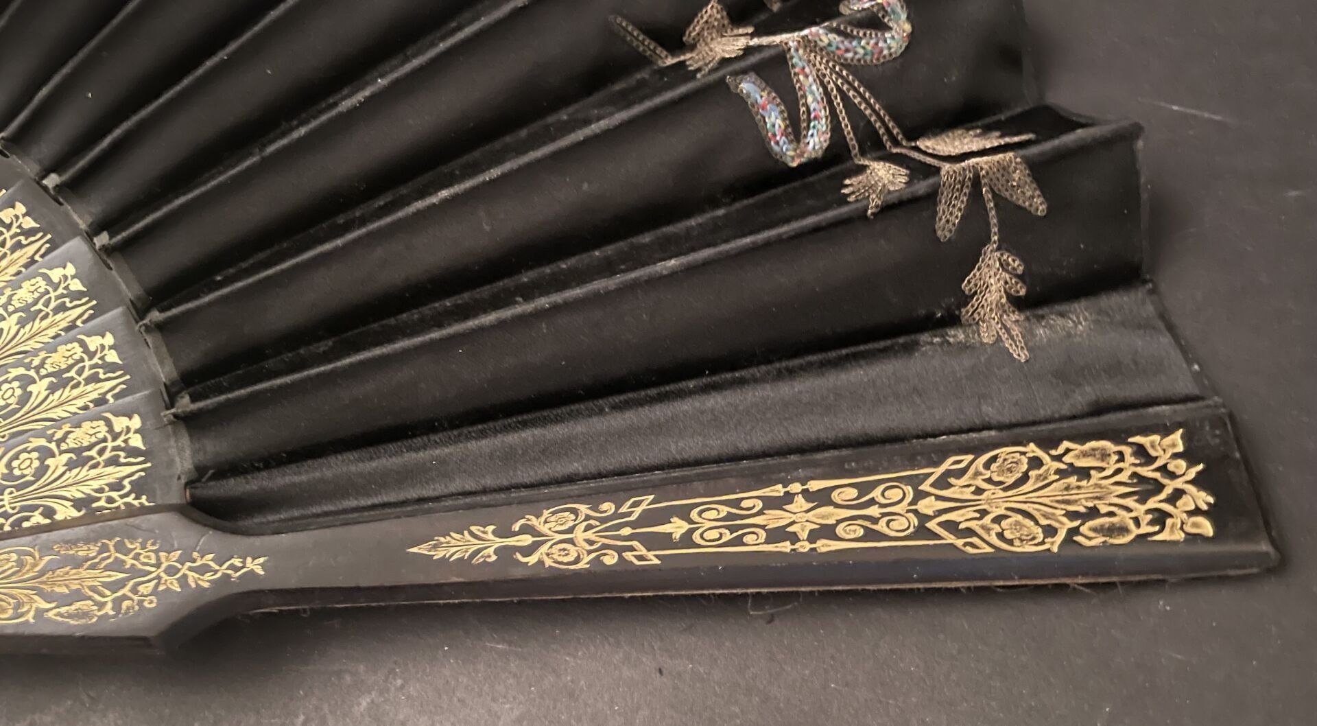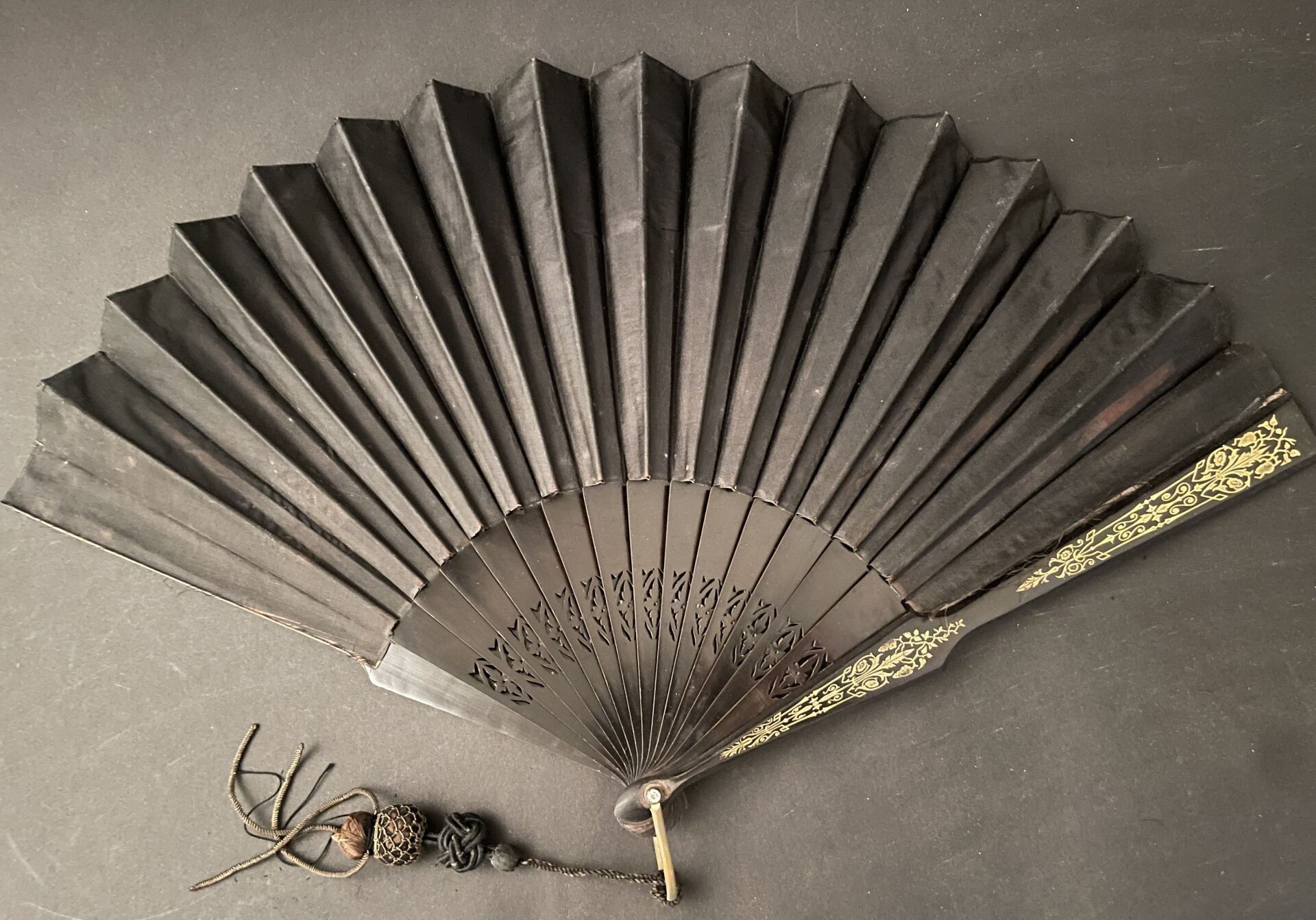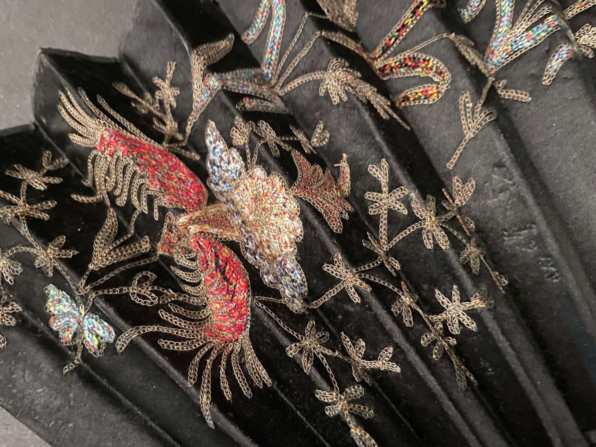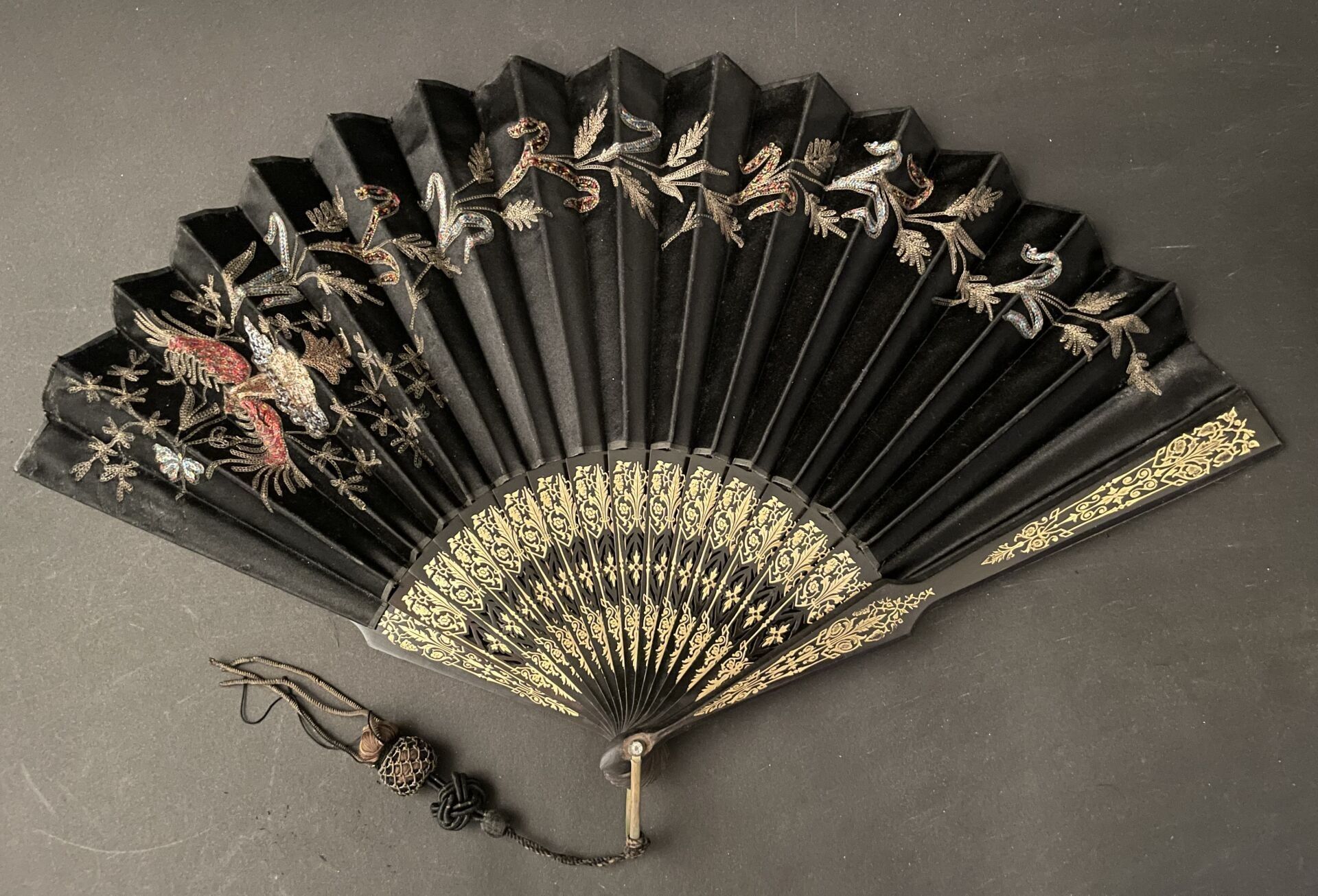 Set of fabric or paper leaf fans with various decorations, w…