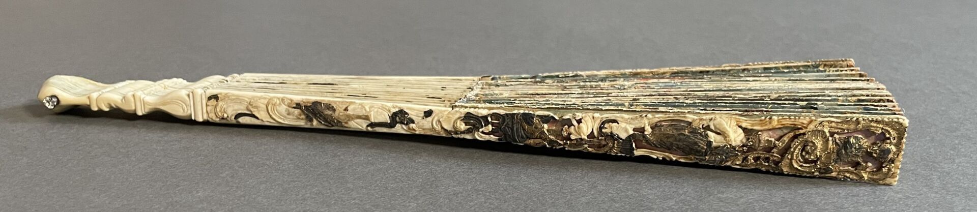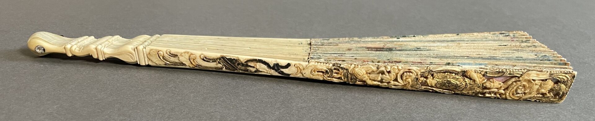 Mounted in ivory (elephantidae spp), pierced, carved, engraved, burgauté, lined with foil and gilded, with Chinese-themed decoration.