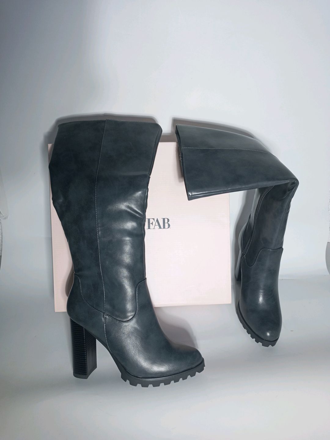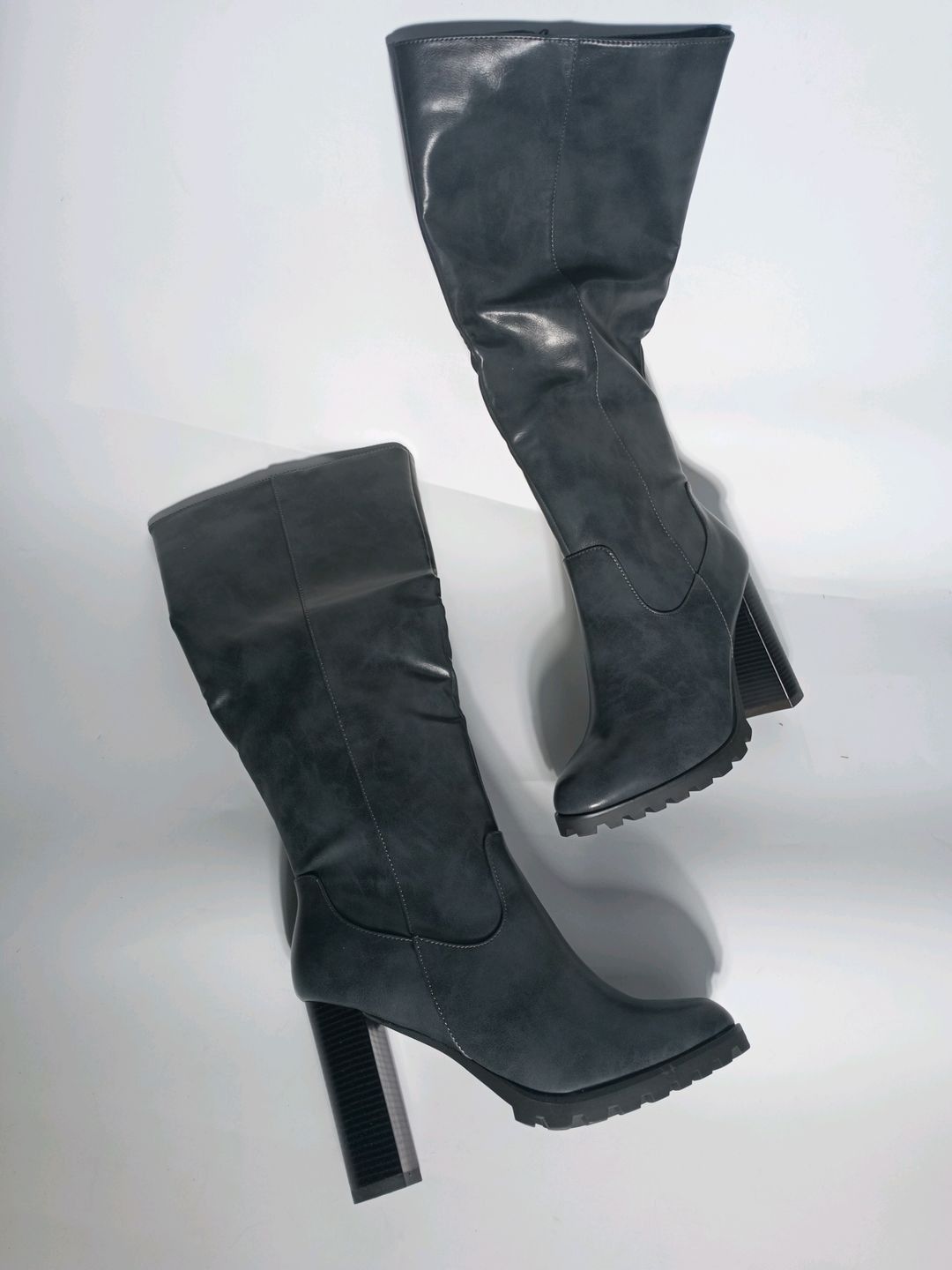 Grey leatherette heeled boots - JUSTFAB - size 40.