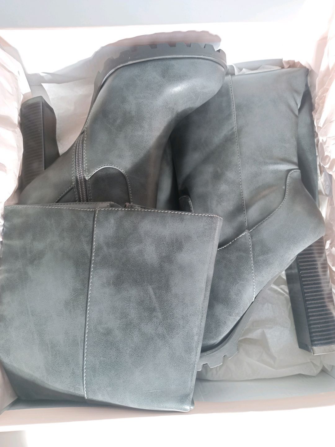 Grey leatherette heeled boots - JUSTFAB - size 40.5 - small manufacturing defects visible on the photos - Brand new - Recoverable VAT - This lot available everywhere in France from € 12.24 - This lot available everywhere in Europe from € 18.00