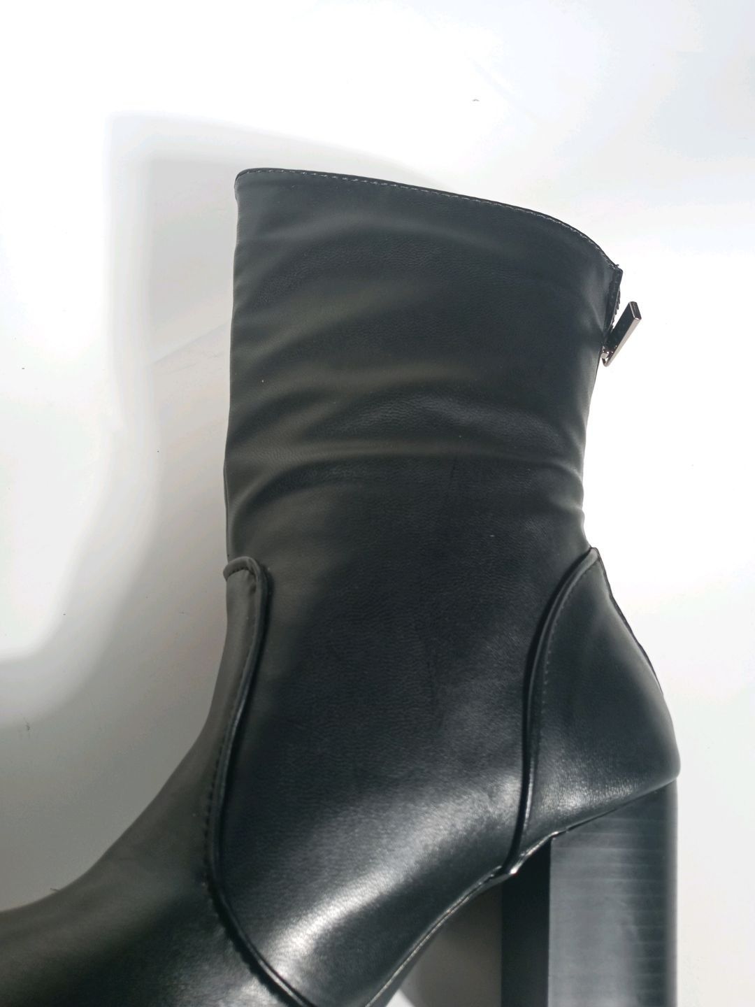 Black leatherette heeled boots - JUSTFAB - size 36.5 - small manufacturing defects visible on photos - Brand new - Recoverable VAT - This lot available everywhere in France from € 12.24 - This lot available everywhere in Europe from € 18.00