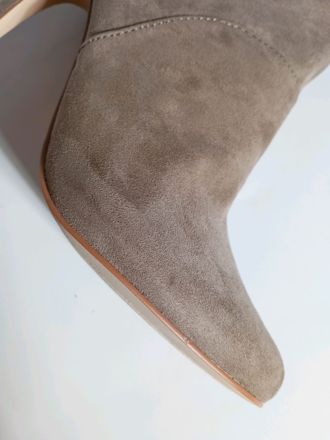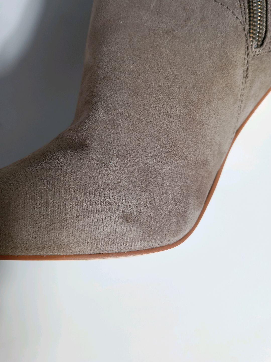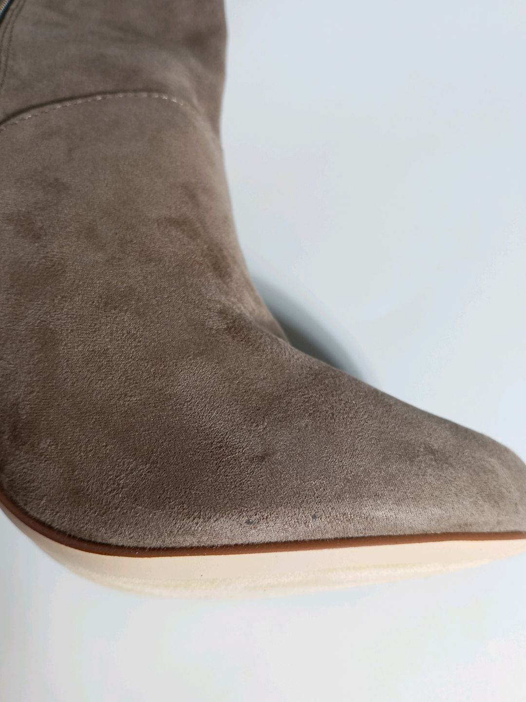 Taupe suedette high-heeled boots - JUSTFAB - size 40 - small manufacturing defects visible on photos - Brand new - Recoverable VAT - This lot available everywhere in France from € 12.24 - This lot available everywhere in Europe from € 18.00