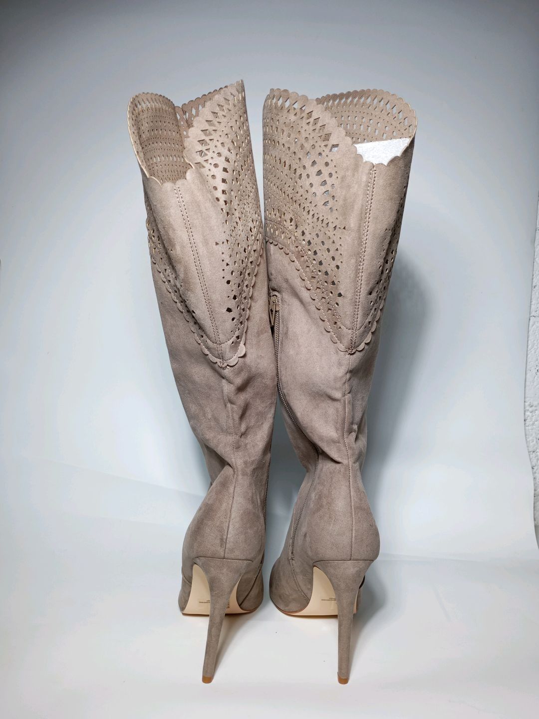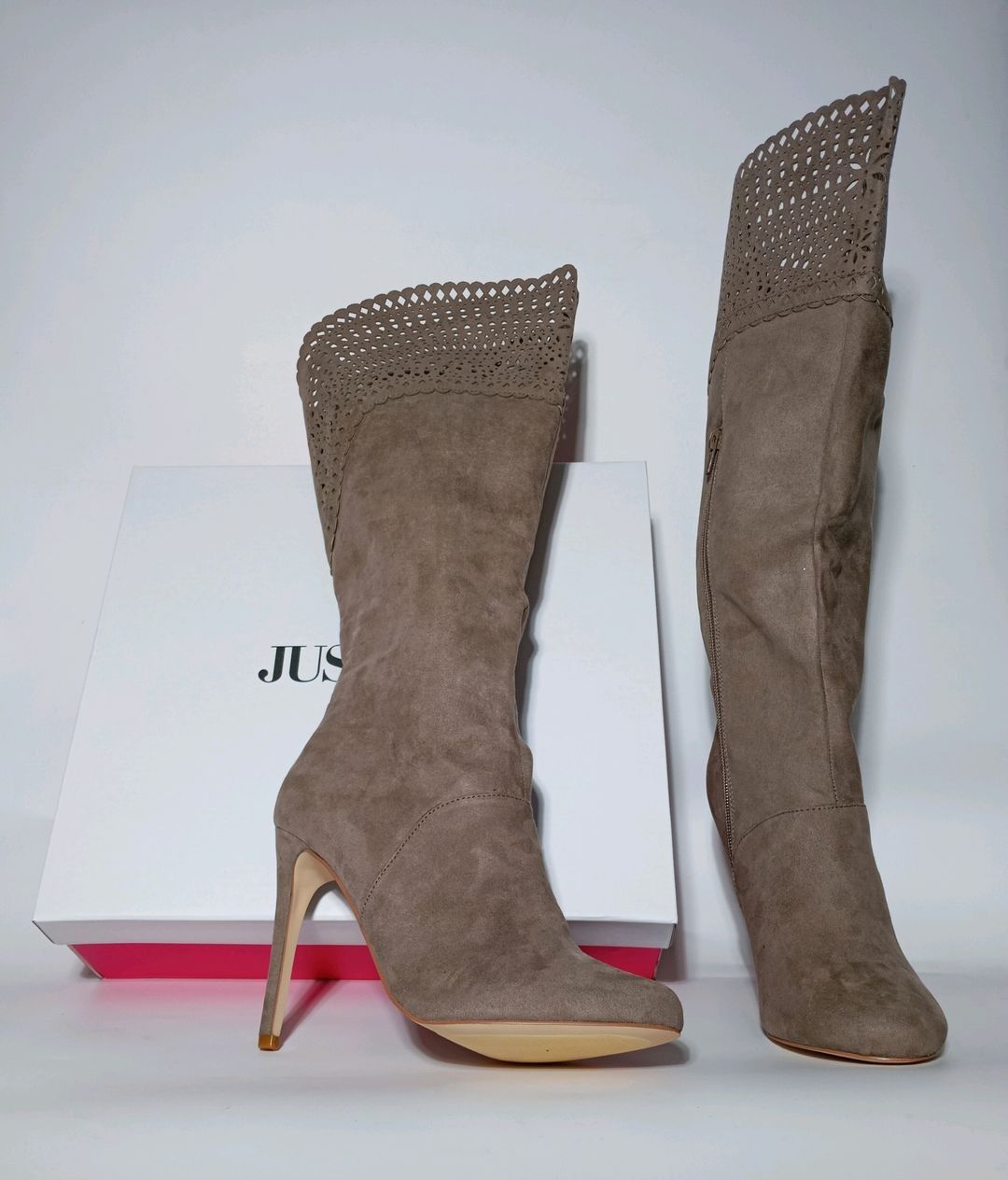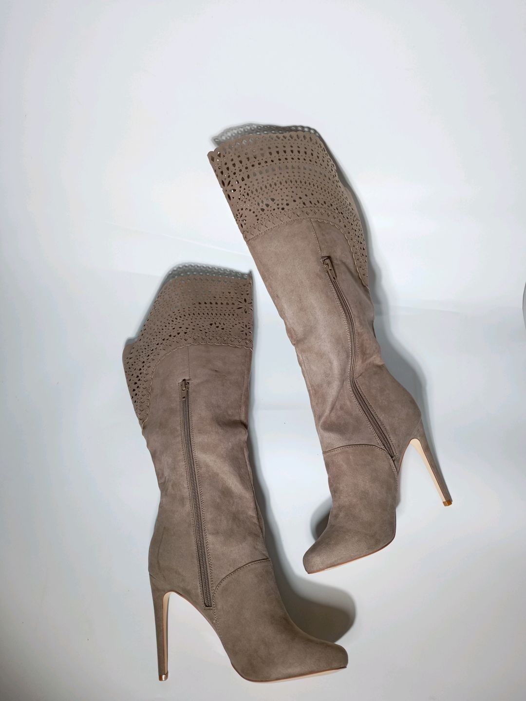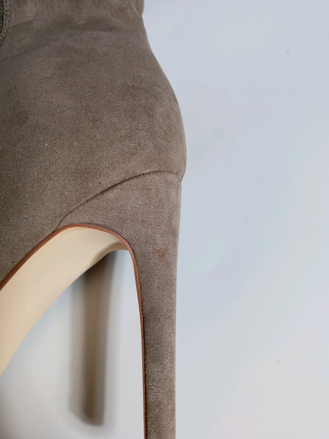 Perforated high heel boots in taupe suede - JUSTFAB - size 40 - small manufacturing defects visible on the photos - Brand new - Recoverable VAT - This lot available everywhere in France from €12.24 - This lot available everywhere in Europe from €18.00