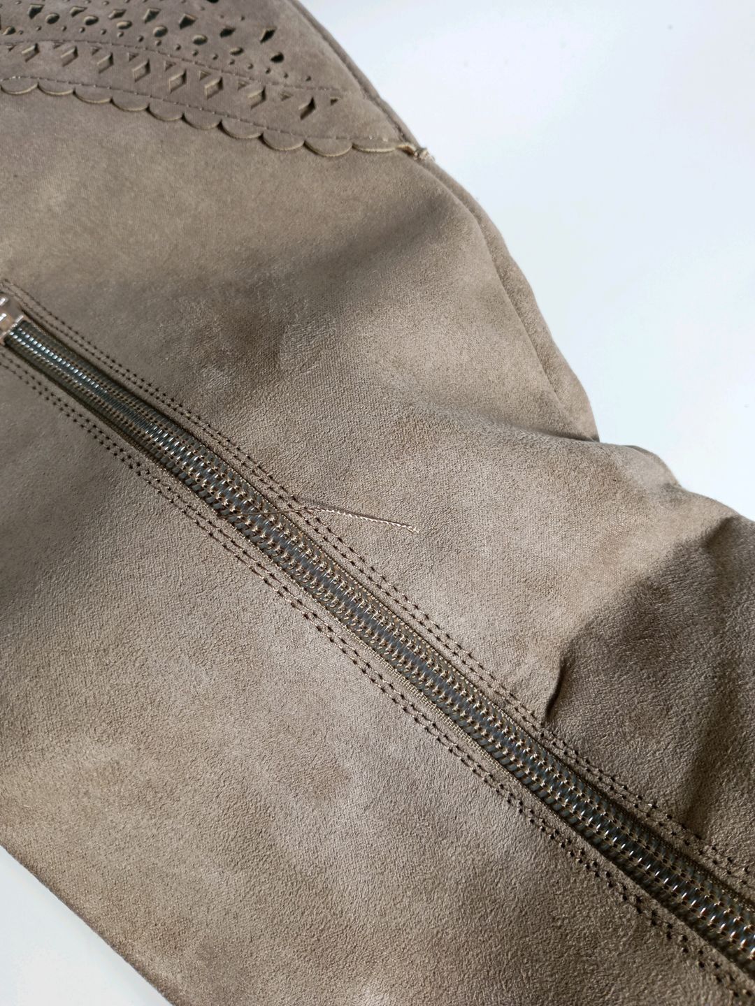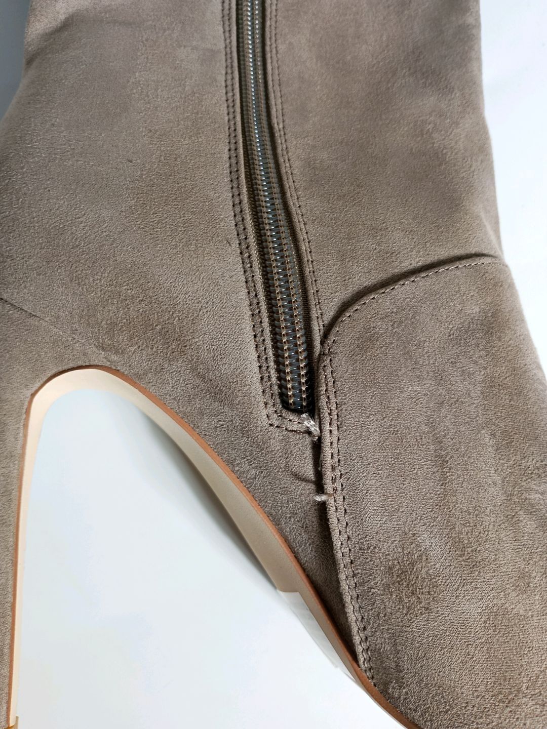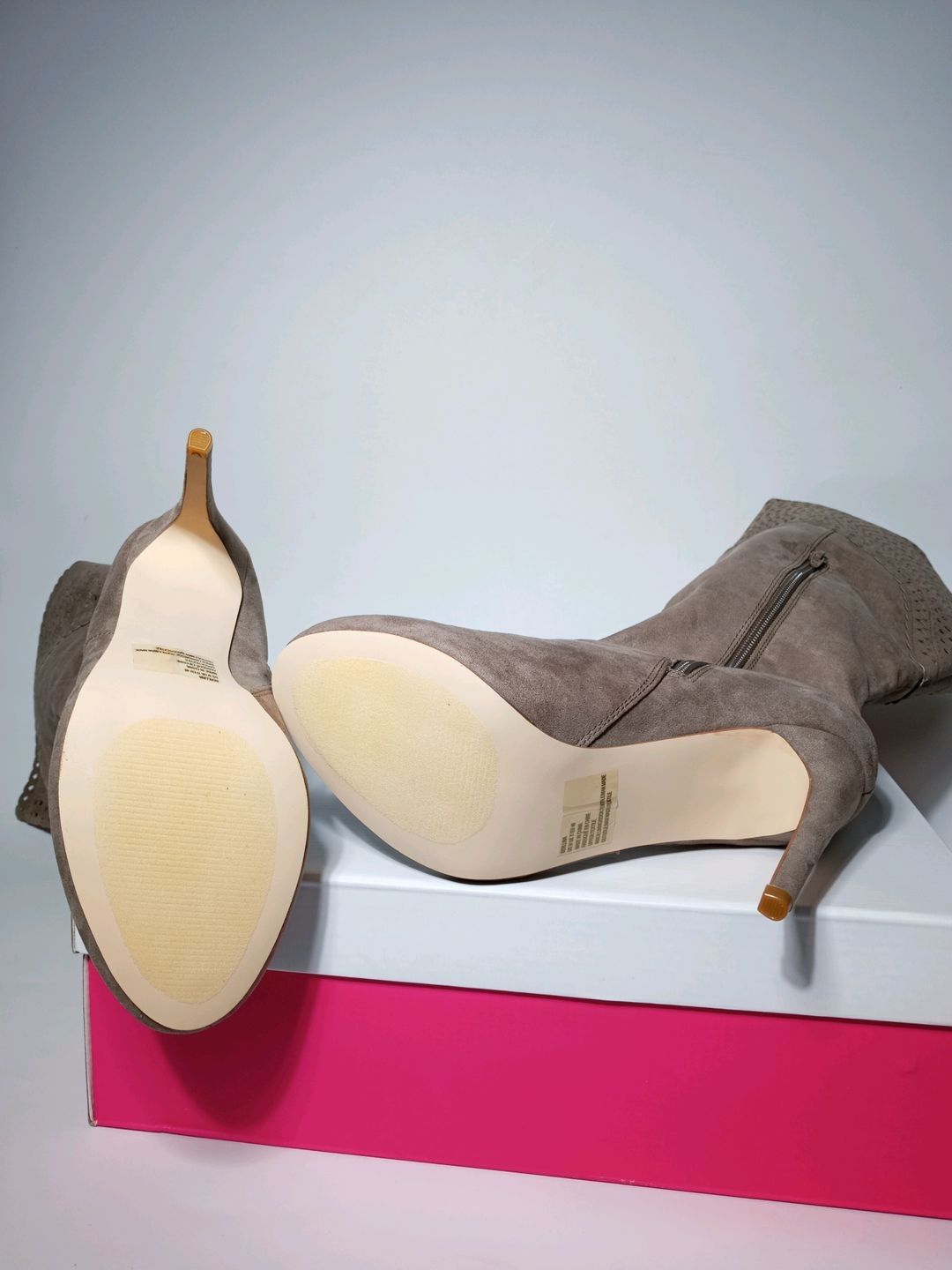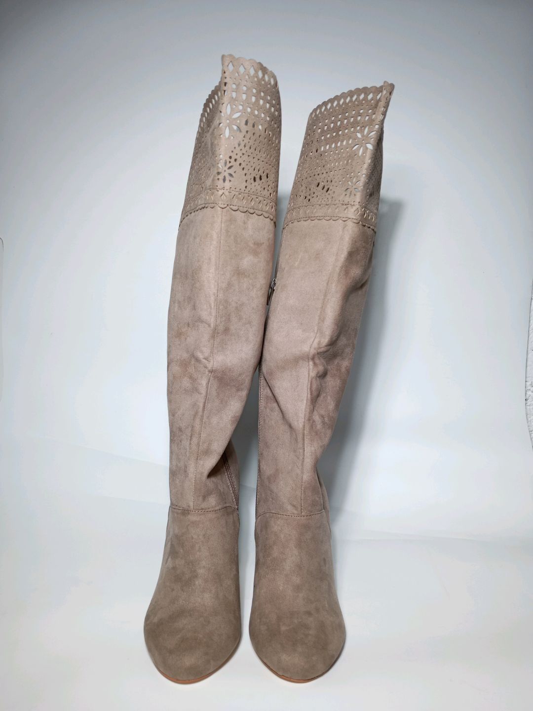 Perforated high heel boots in taupe suede - JUSTFAB - size 40 - small manufacturing defects visible on the photos - Brand new - Recoverable VAT - This lot available everywhere in France from €12.24 - This lot available everywhere in Europe from €18.00