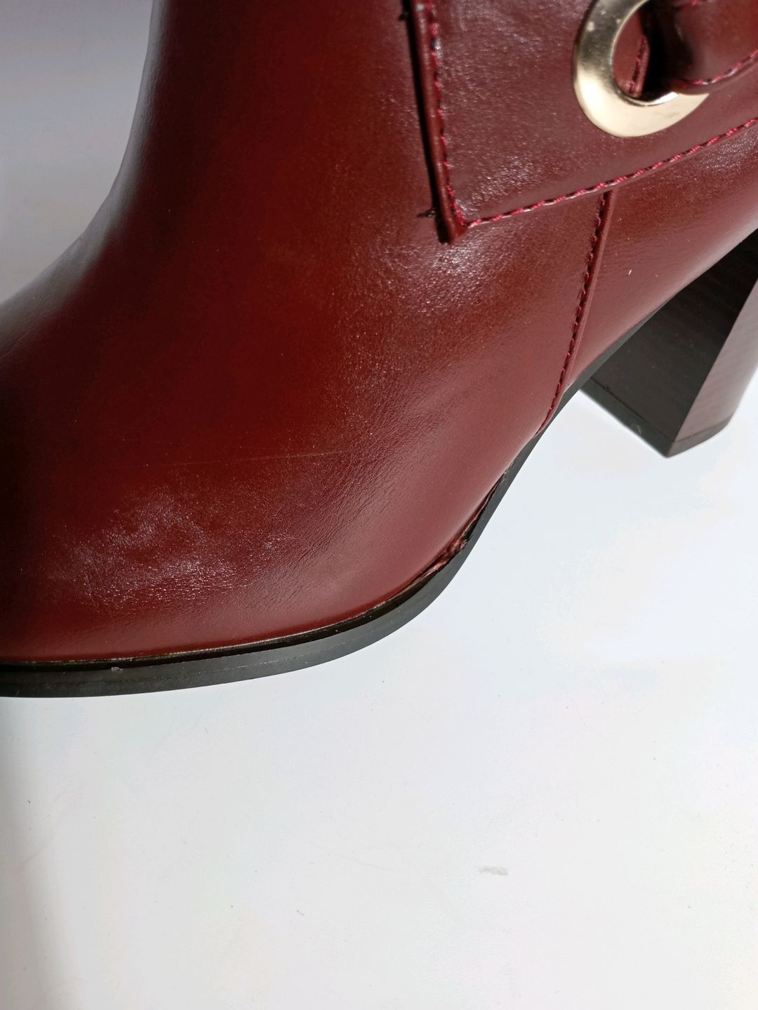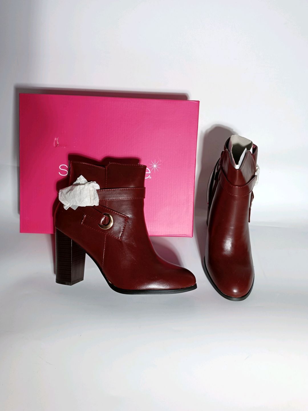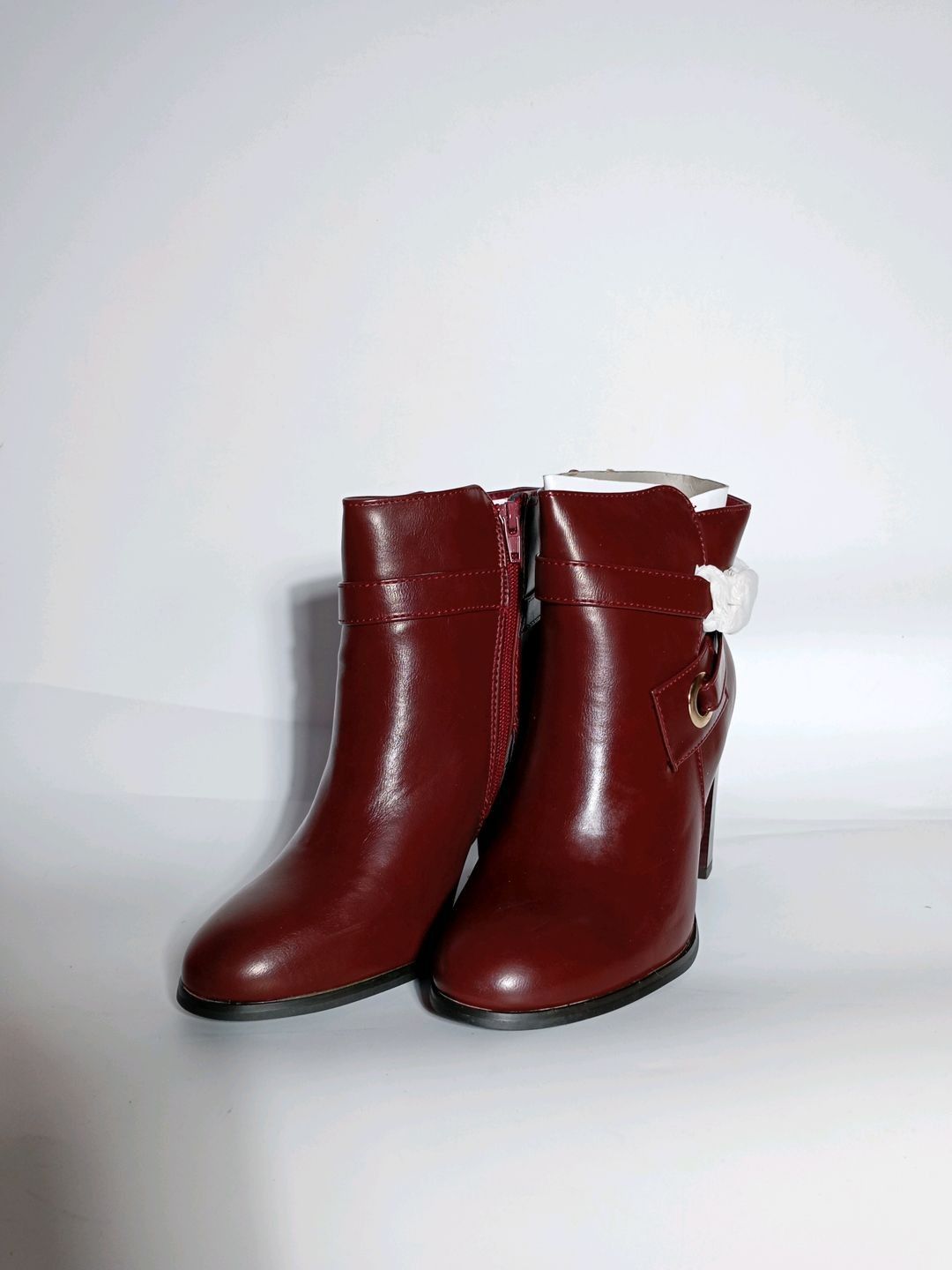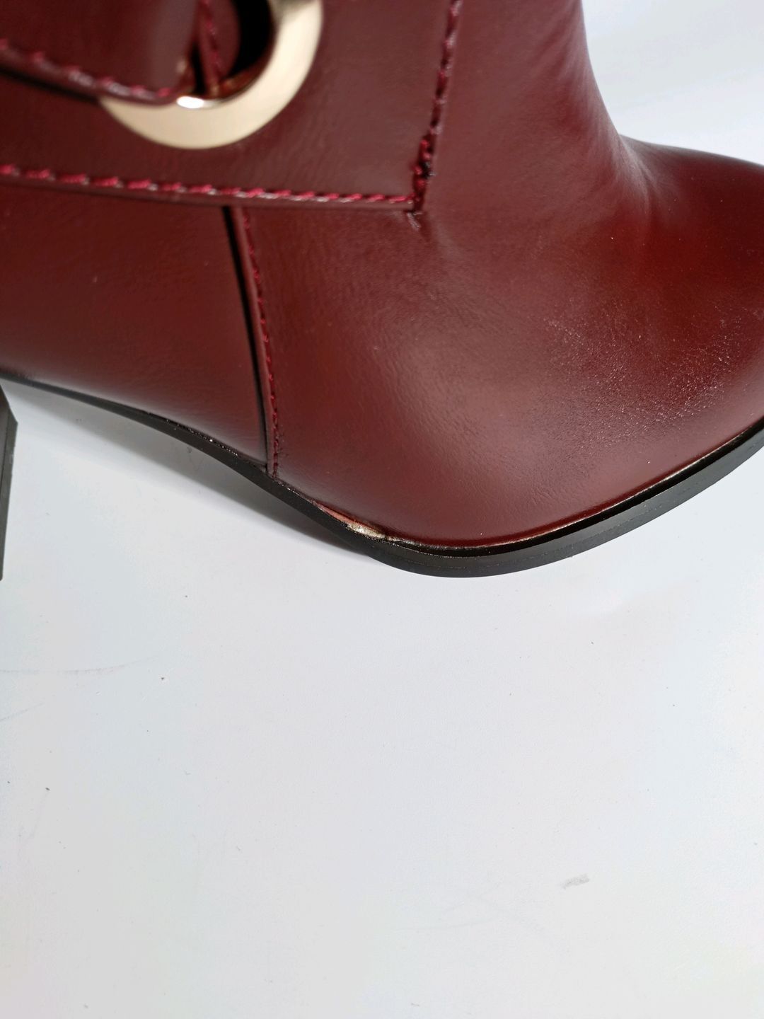 Heeled ankle boots in wine-red faux leather with gold detail - SHOEDAZZLE - size 40.5 - small manufacturing defects visible on photos - Brand new - VAT Recoverable - This lot available everywhere in France from € 12.24 - This lot available everywhere in Europe from € 18.00