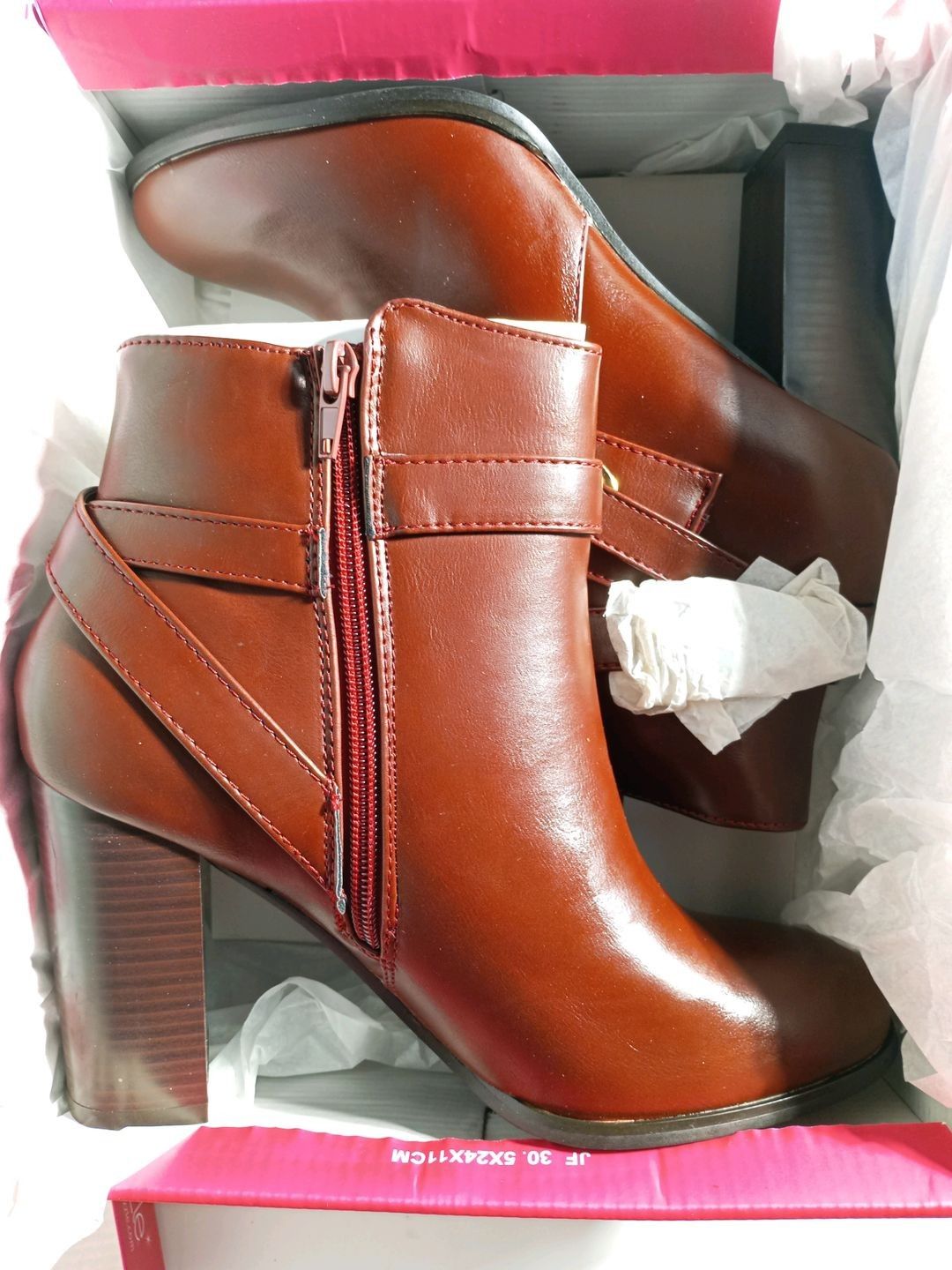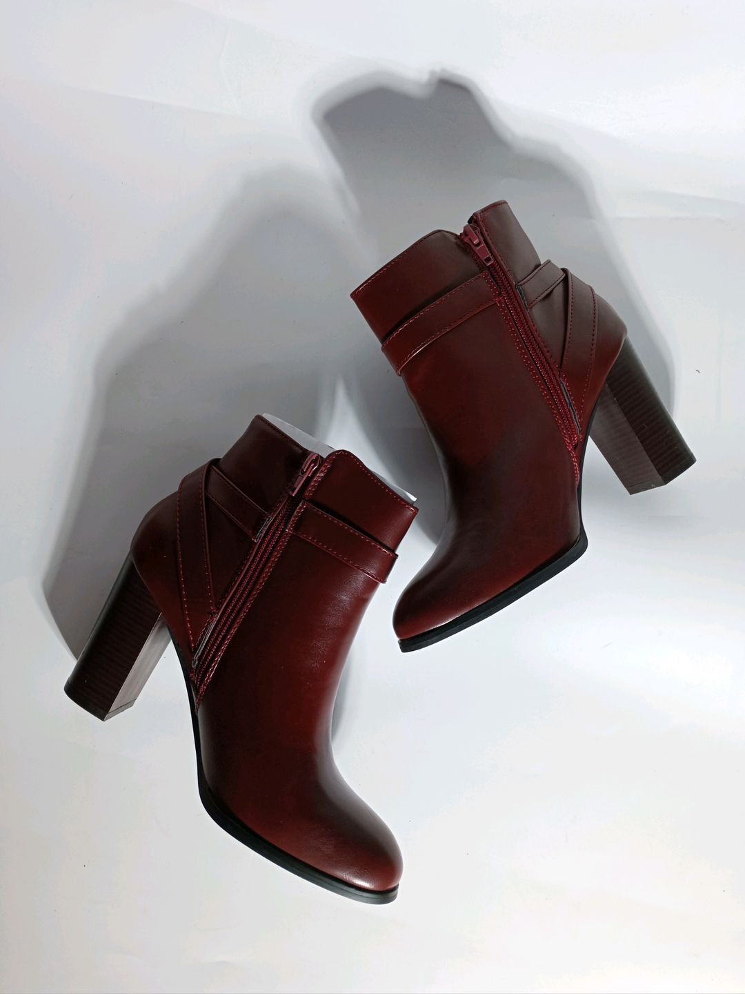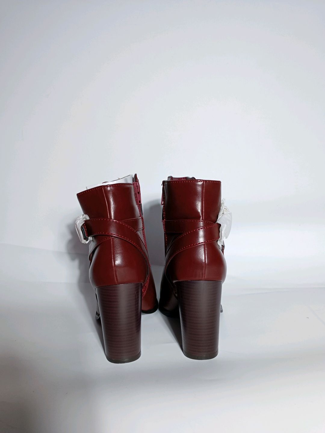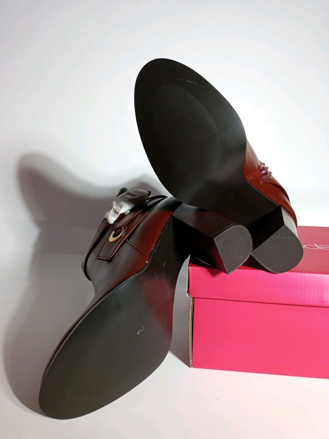 Heeled ankle boots in wine-red faux leather with gold detail - SHOEDAZZLE - size 40.5 - small manufacturing defects visible on photos - Brand new - VAT Recoverable - This lot available everywhere in France from € 12.24 - This lot available everywhere in Europe from € 18.00