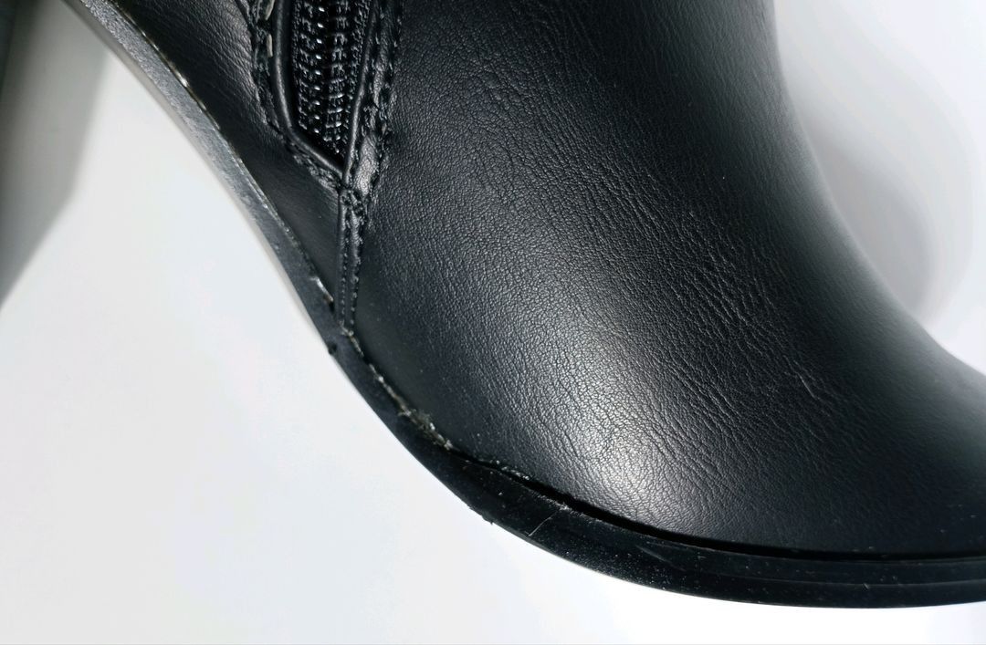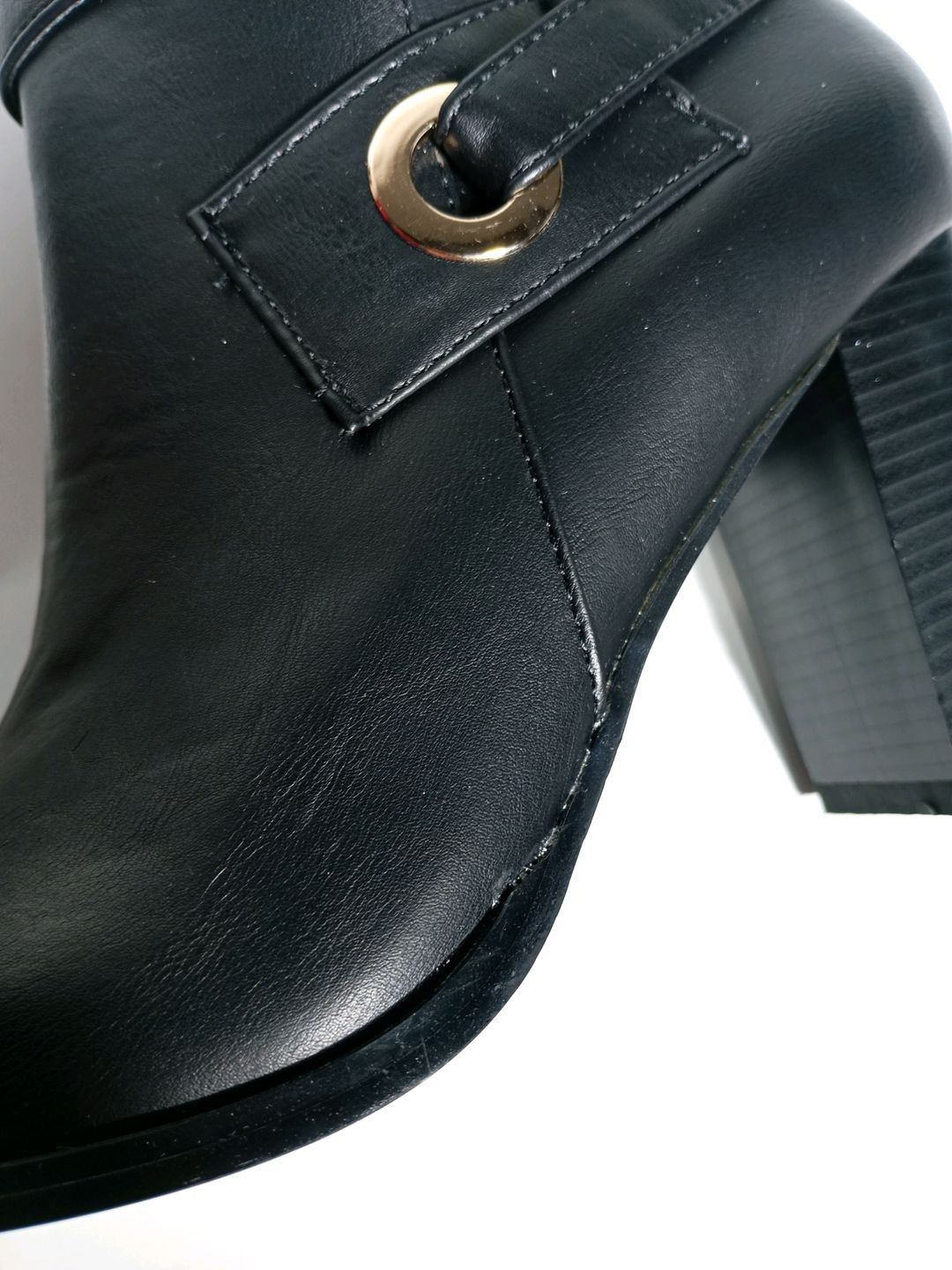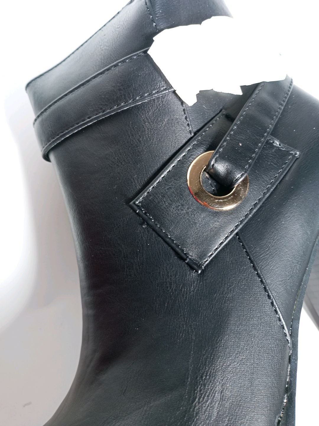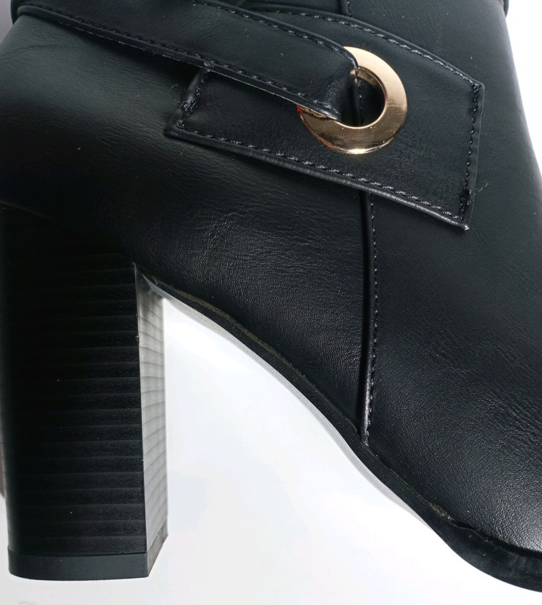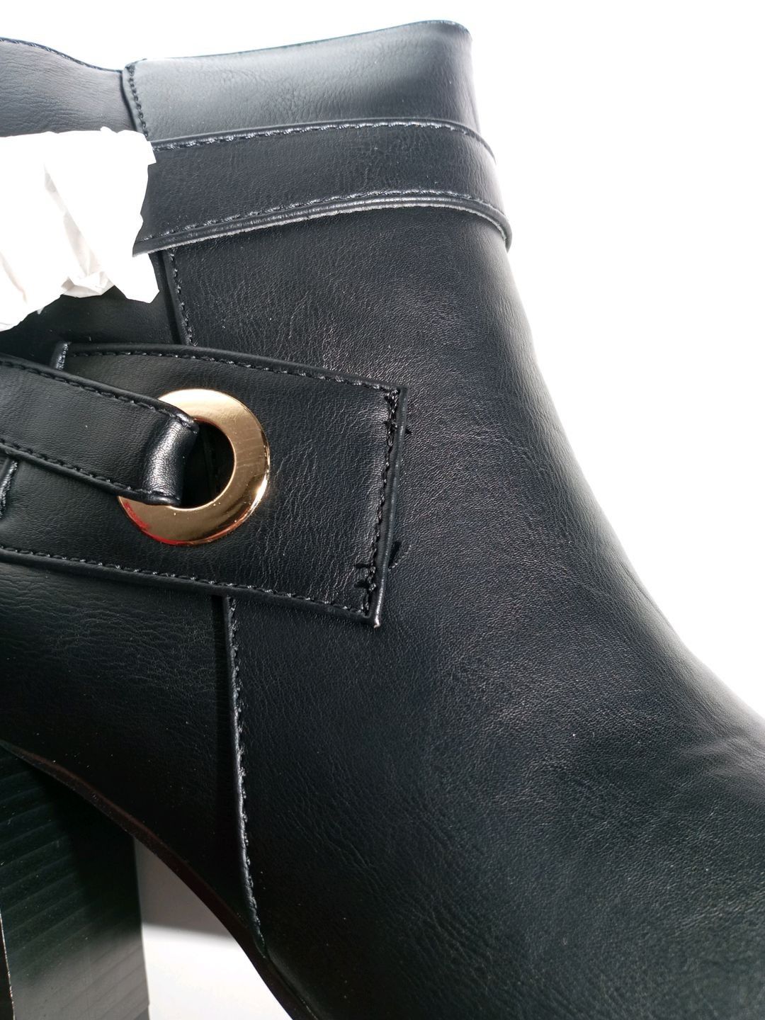 Heeled boots in black leatherette with gold detail - SHOEDAZZLE - size 40.5 - small manufacturing defects visible on the photos - Brand new - Recoverable VAT - This lot available everywhere in France from 12,24 € - This lot available everywhere in Europe from 18,00 €.