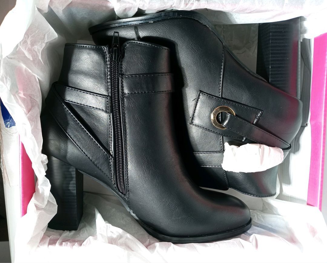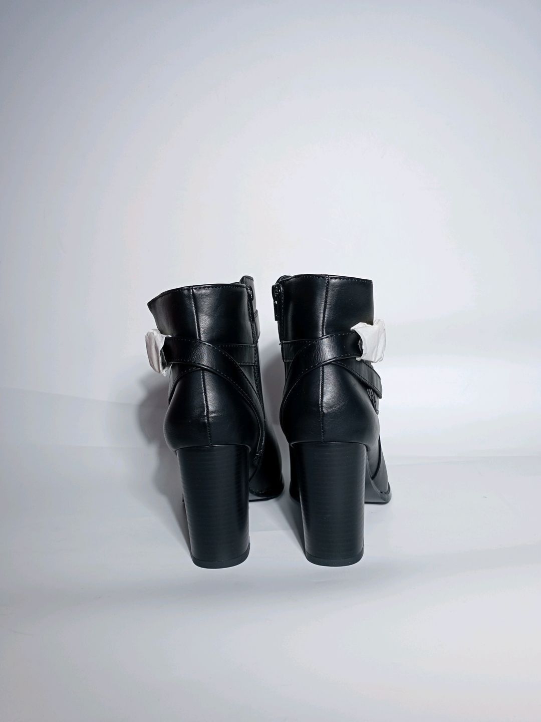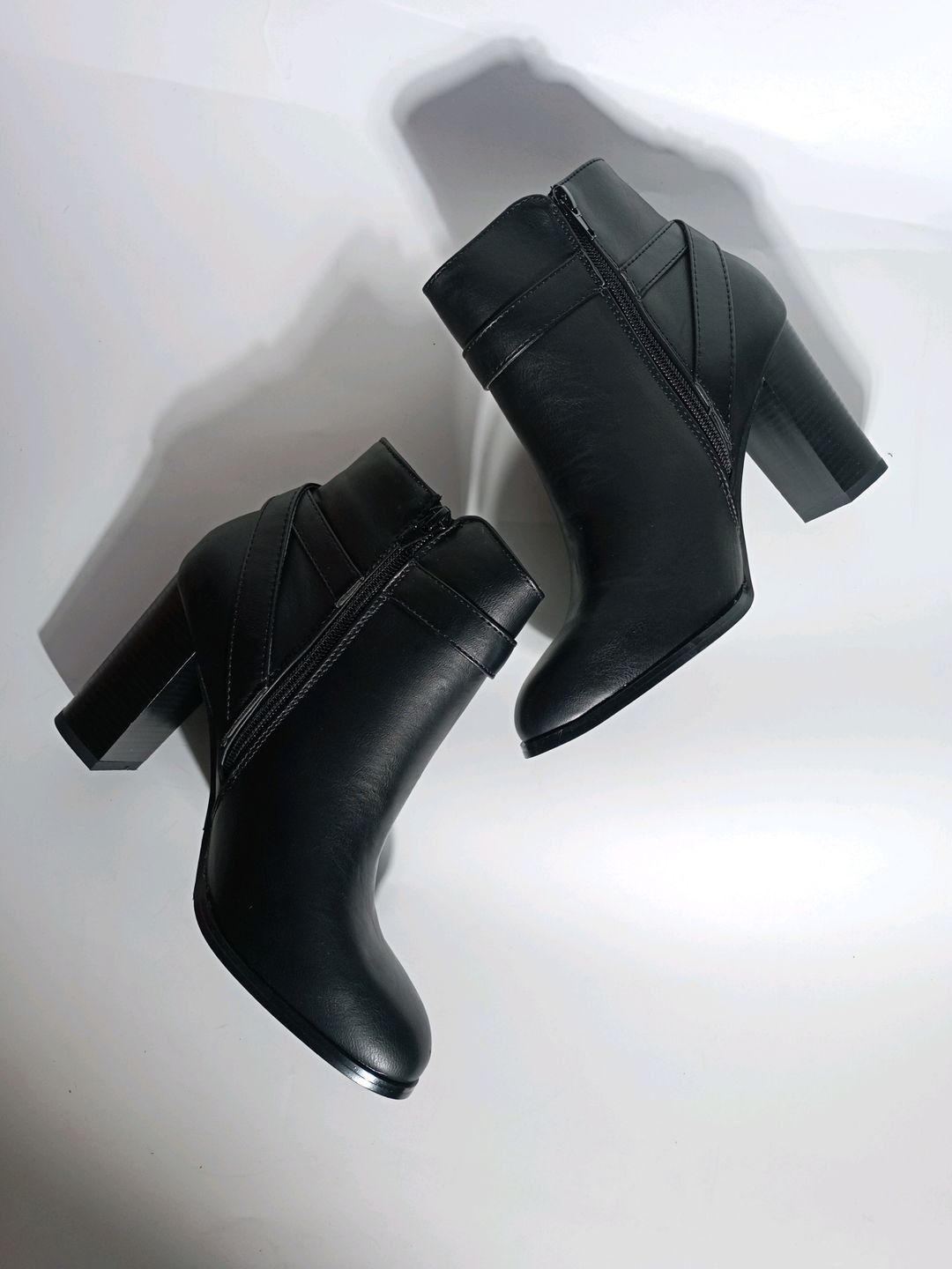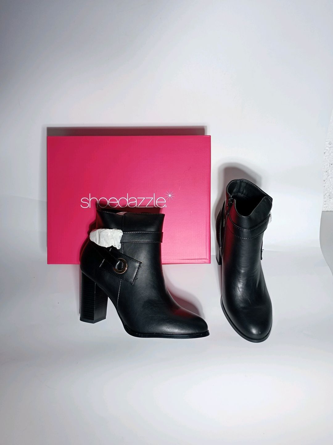 Heeled boots in black leatherette with gold detail - SHOEDAZZLE - size 40.5 - small manufacturing defects visible on the photos - Brand new - Recoverable VAT - This lot available everywhere in France from 12,24 € - This lot available everywhere in Europe from 18,00 €.