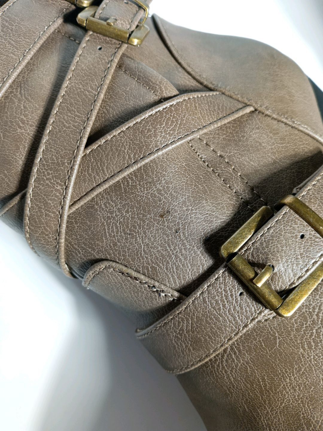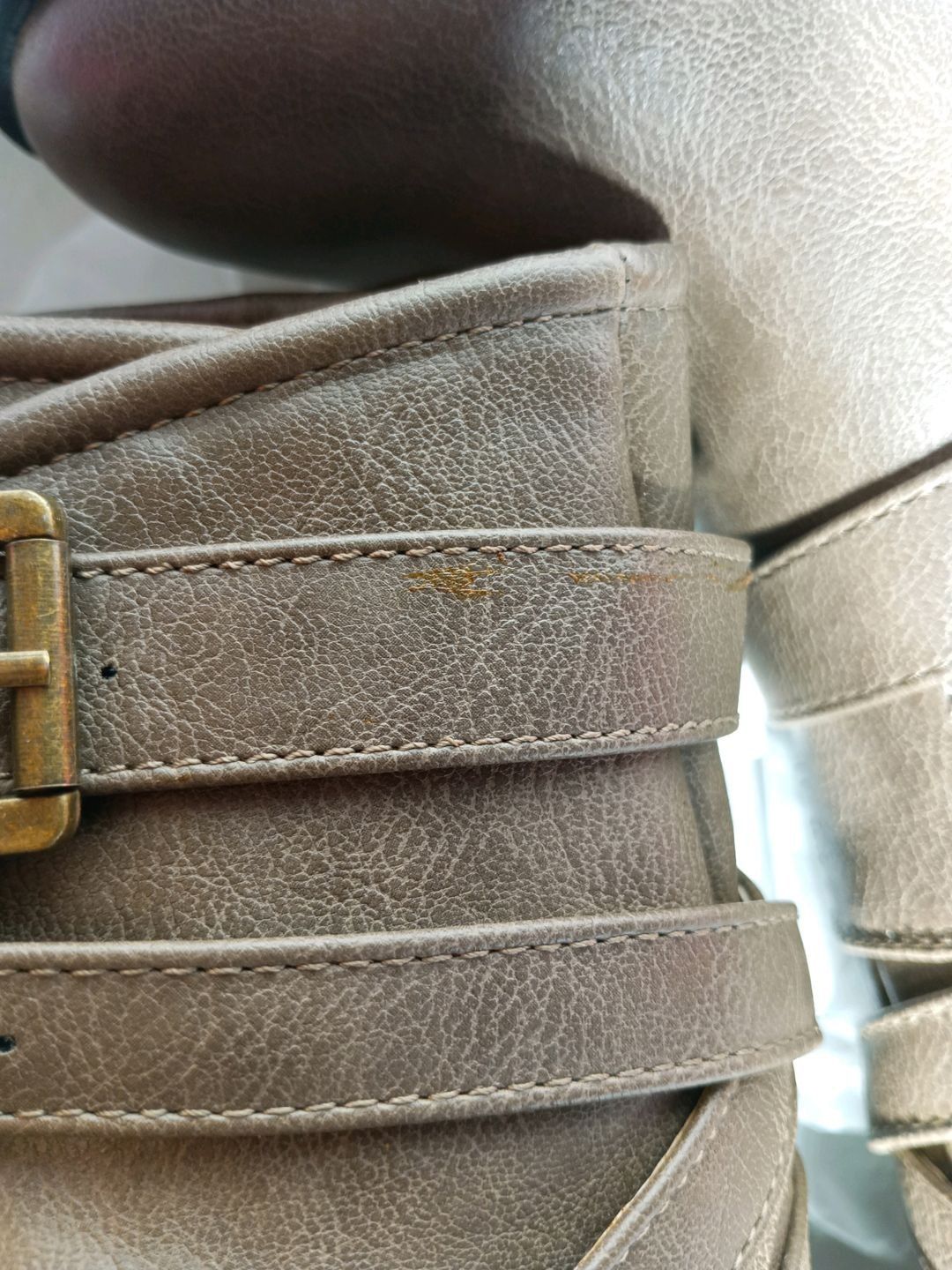 Taupe leatherette ankle boots with gold details - JUSTFAB - size 42 - small manufacturing defects visible on the photos - Brand new - VAT recoverable - This lot available everywhere in France from € 12.24 - This lot available everywhere in Europe from € 18.00