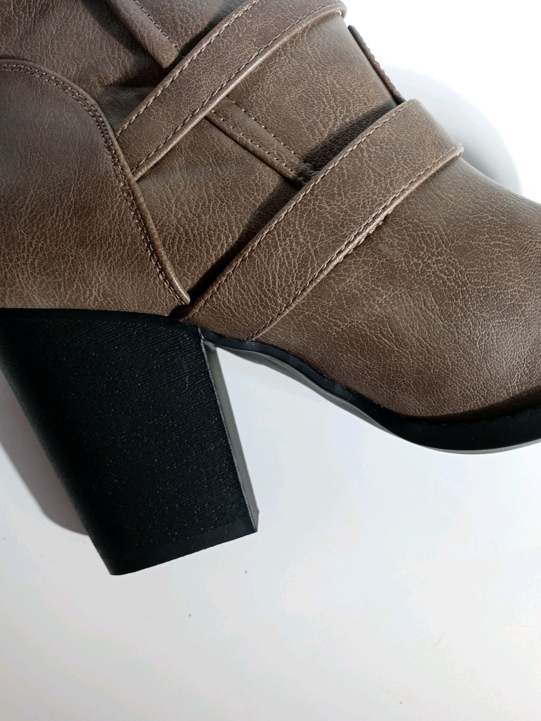 Taupe leatherette ankle boots with gold details - JUSTFAB - size 42 - small manufacturing defects visible on photos - Brand new - VAT recoverable - This lot available everywhere in France from € 12.24 - This lot available everywhere in Europe from € 18.00