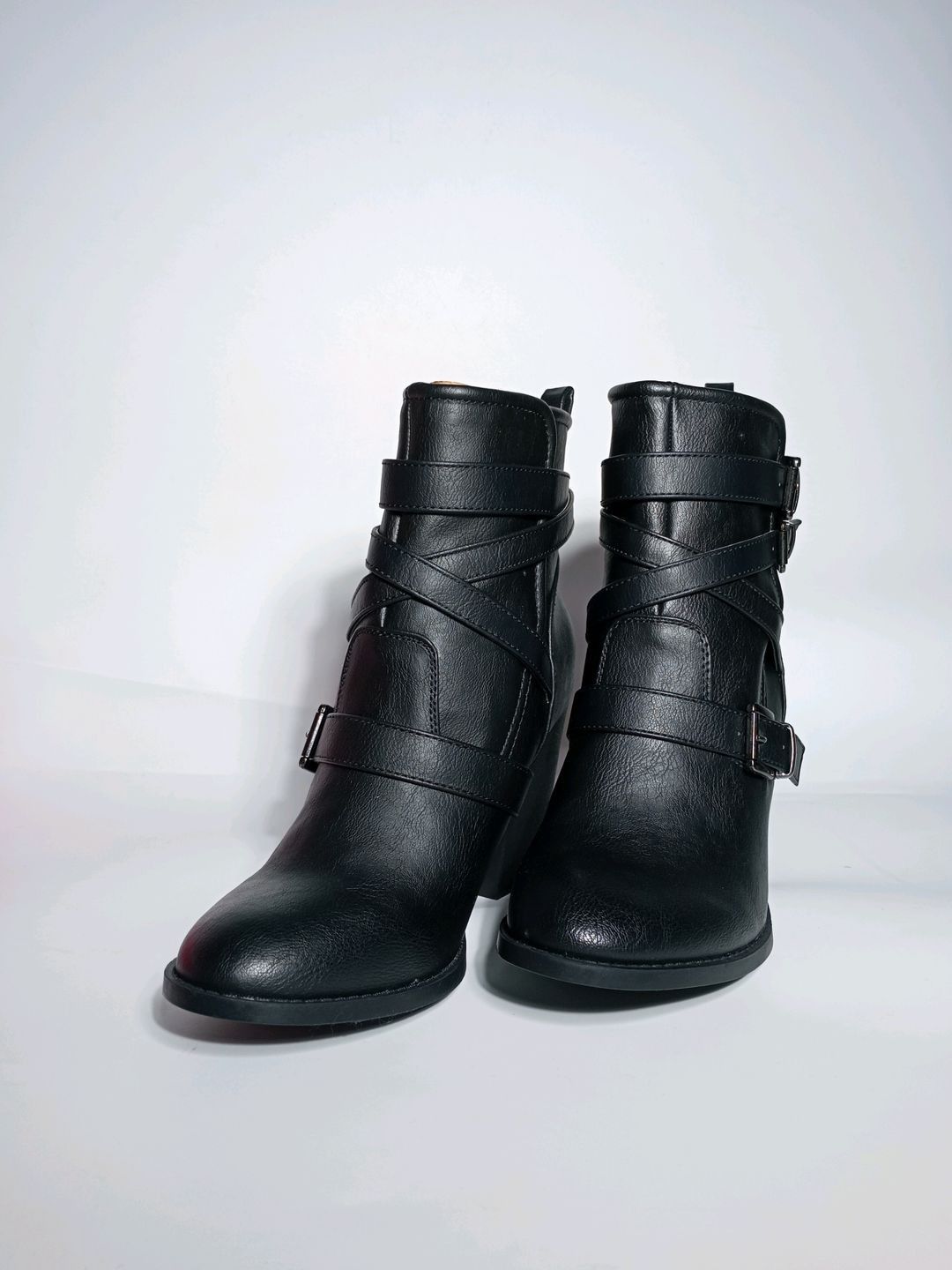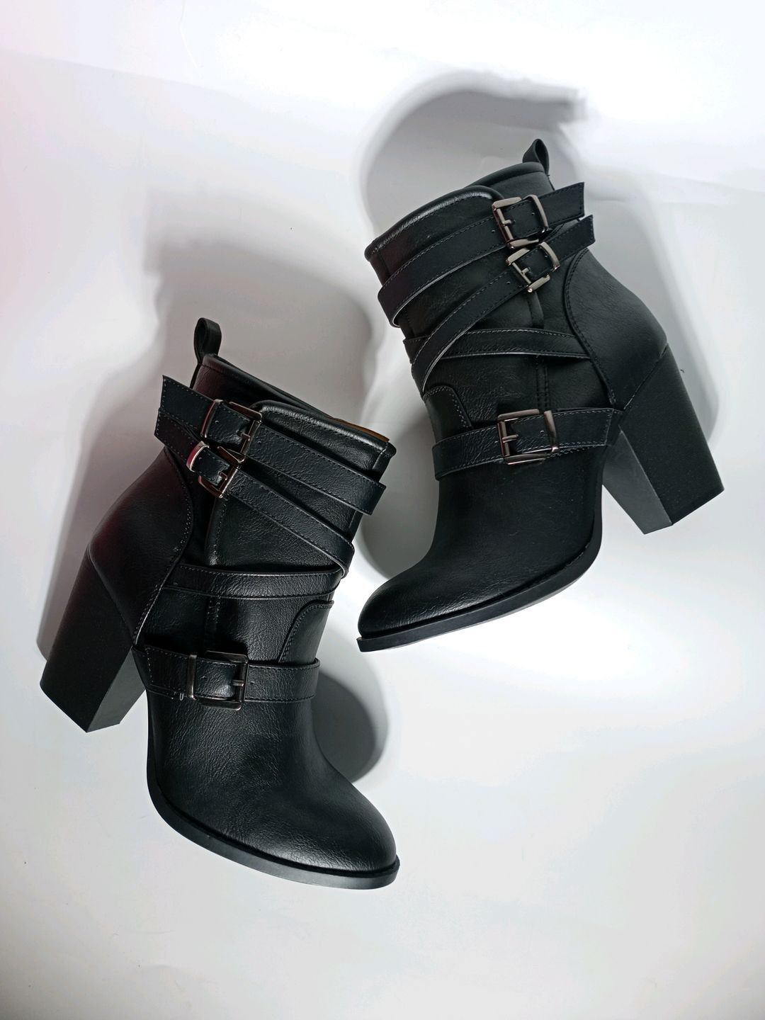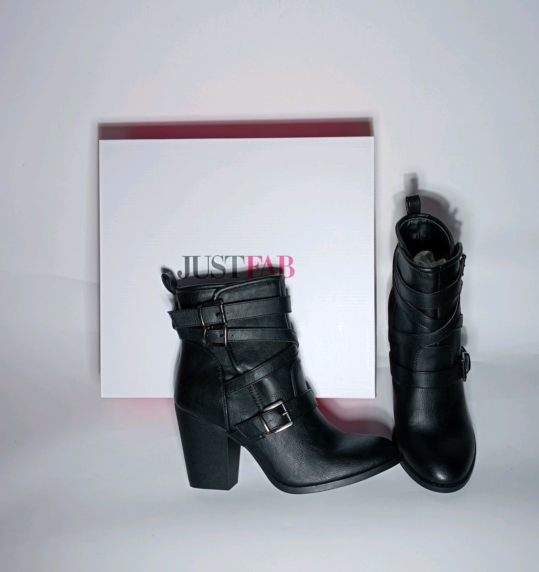 Black leatherette ankle boots with silver details - JUSTFAB - size 42 - small manufacturing defects visible on photos - Brand new - Recoverable VAT - This lot available everywhere in France from € 12.24 - This lot available everywhere in Europe from € 18.00