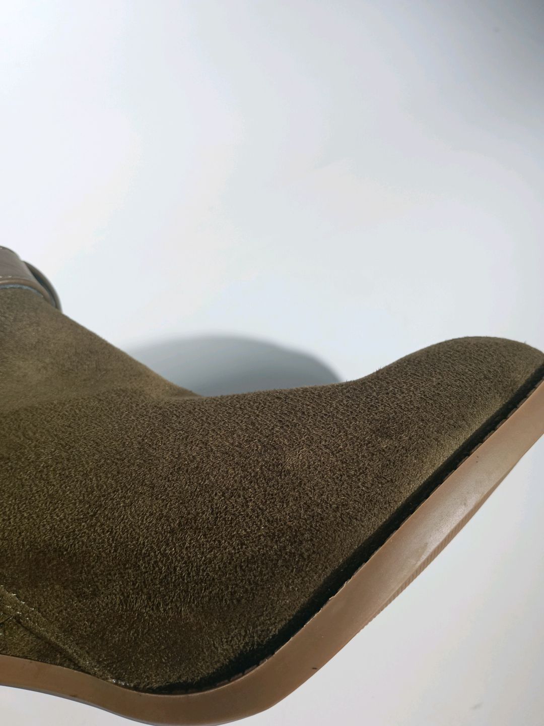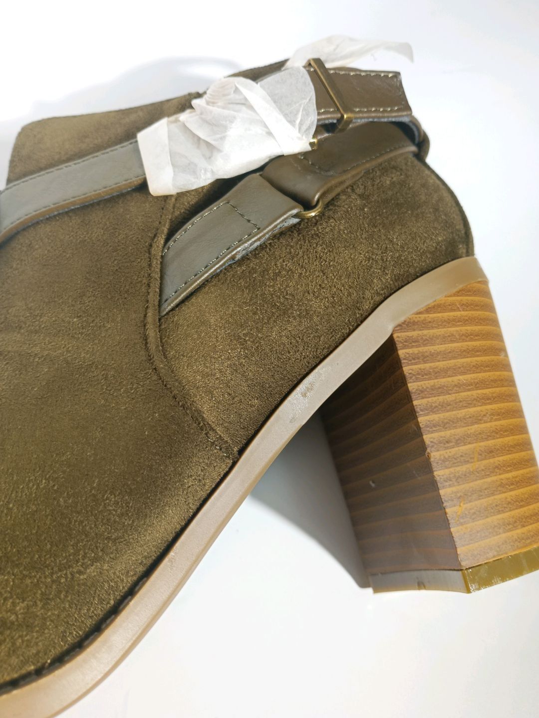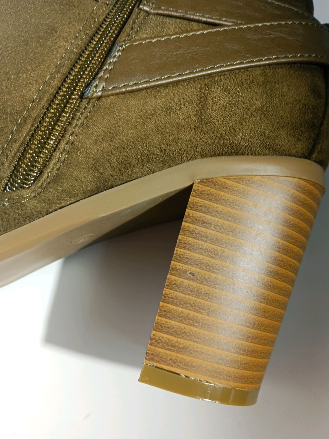 Heeled boots in suedette with gold detail in olive - SHOEDAZZLE - size 40.5 - small manufacturing defects visible on photos - Brand new - Recoverable VAT - This lot available everywhere in France from 12,24 € - This lot available everywhere in Europe from 18,00 €.
