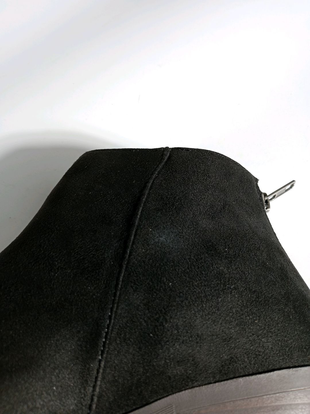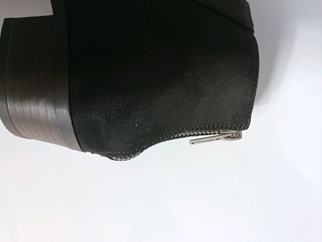 Black suede boots - JUSTFAB - size 37.5 - small manufacturing defects visible on photos - Brand new - VAT recoverable - This lot available everywhere in France from 12,24 € - This lot available everywhere in Europe from 18,00 €.