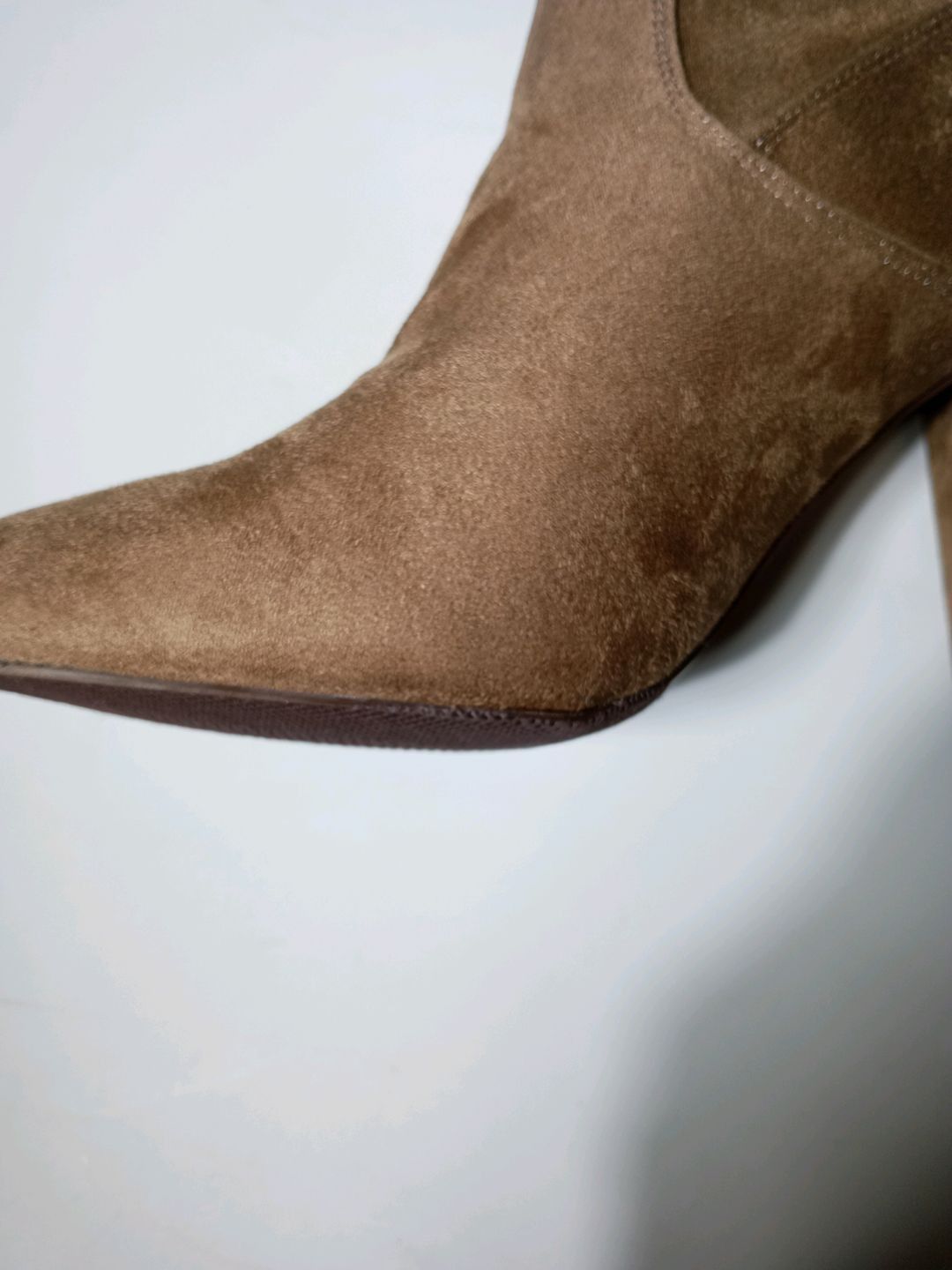 Pair of taupe suedette pointed heel ankle boots - JUSTFAB - Size 40.5 - small manufacturing defects visible on photos - Brand new - Recoverable VAT - This lot available everywhere in France from €12.24 - This lot available everywhere in Europe from €18.00