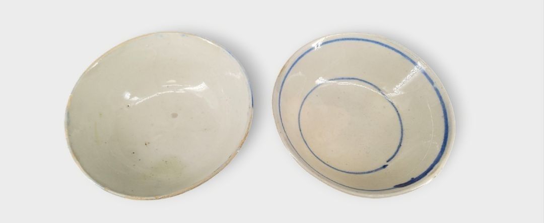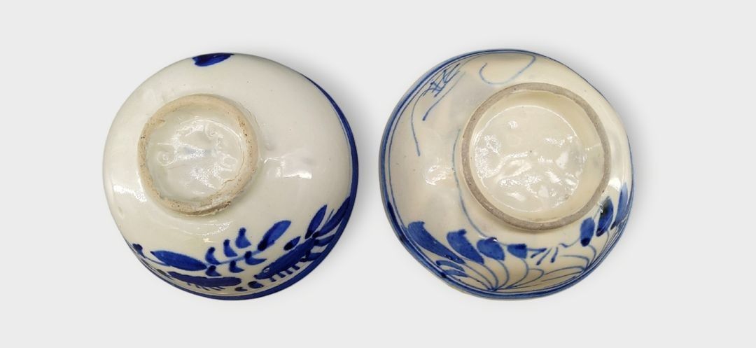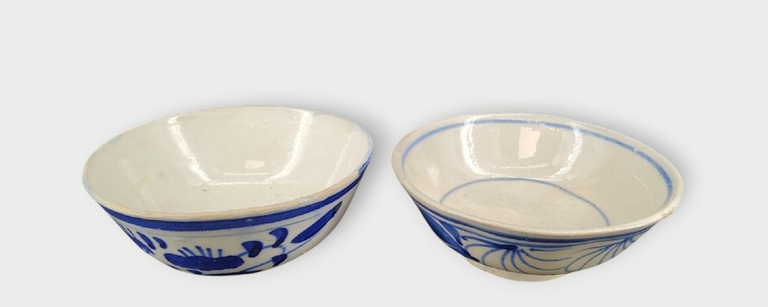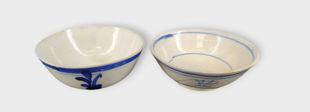 Southeast Asia, 19th century. Two blue and white porcelain bowls with floral decoration,