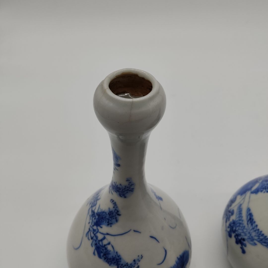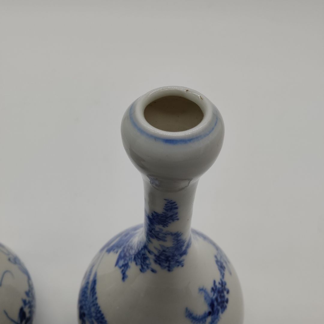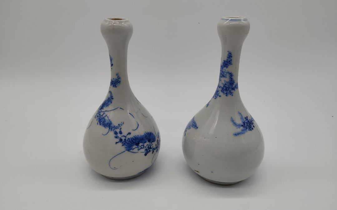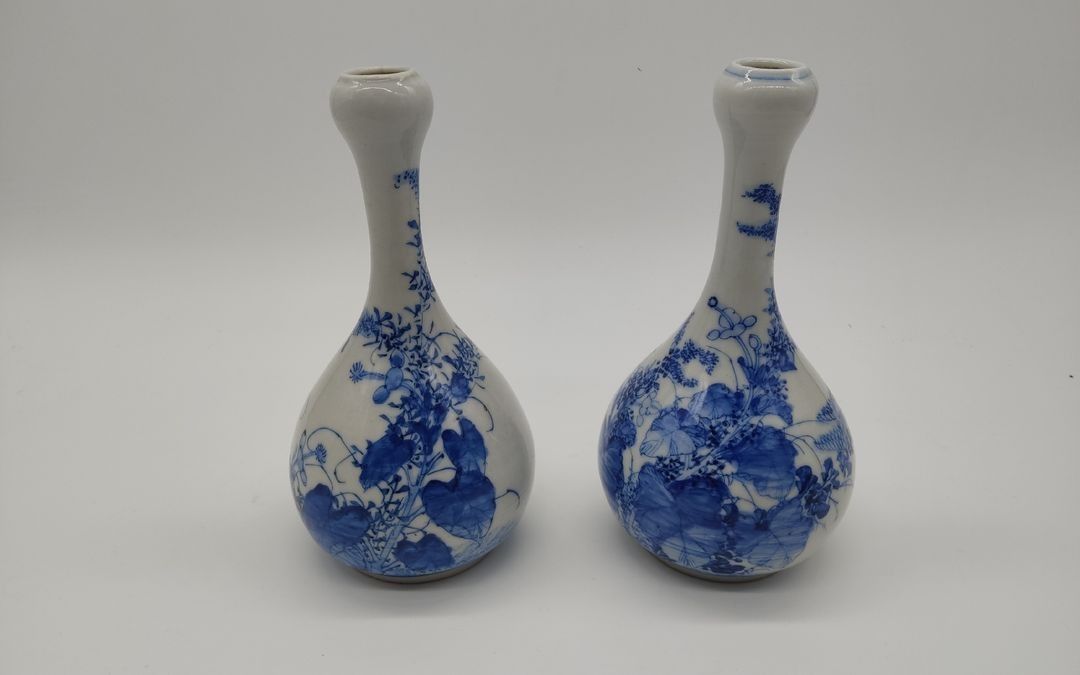 A pair of blue-white porcelain bottle vases decorated with flowers.