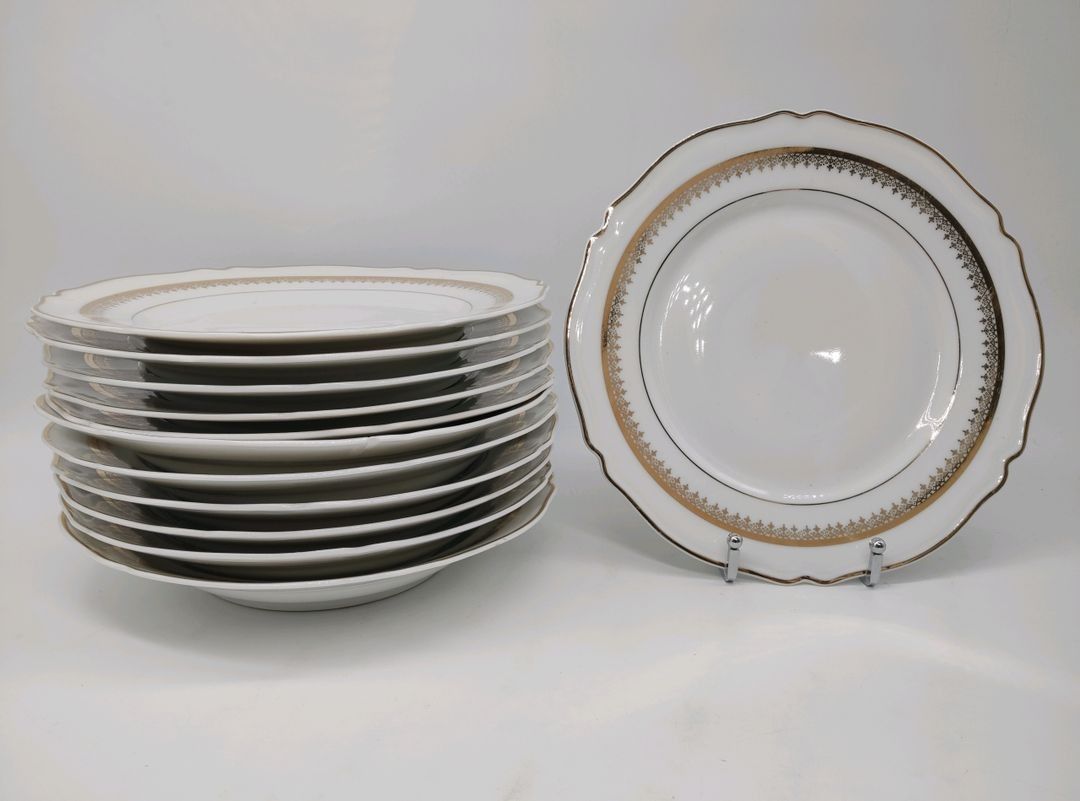 Limoges- 12 white Limoges plates with gilded borders and decorations.
