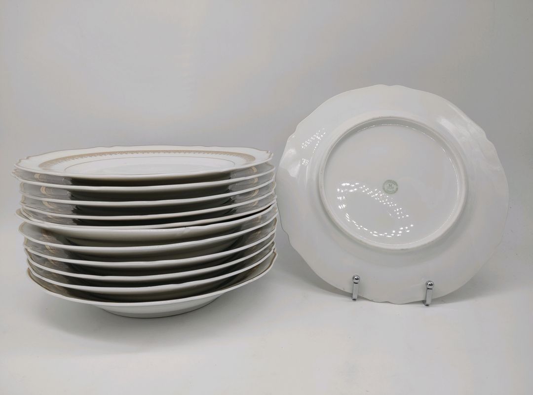 Limoges- 12 white Limoges plates with gilded borders and dec…