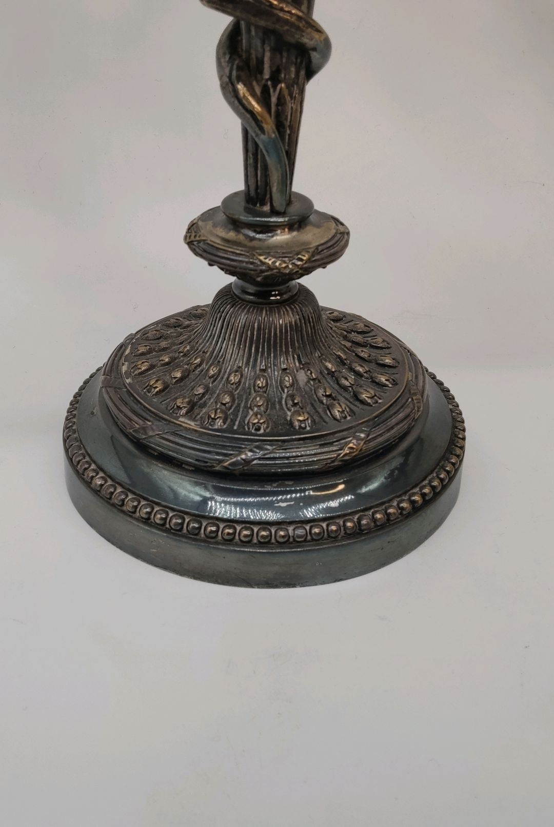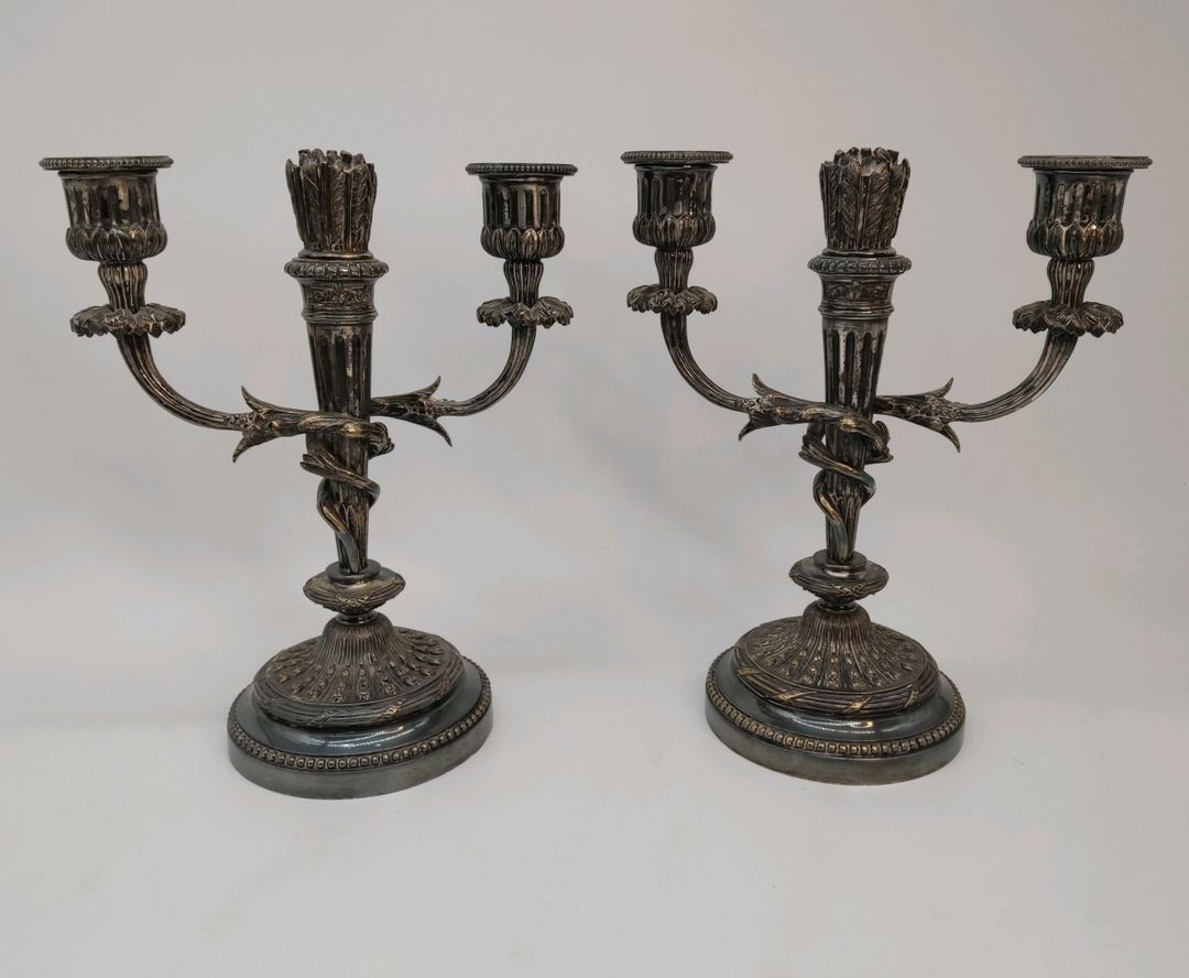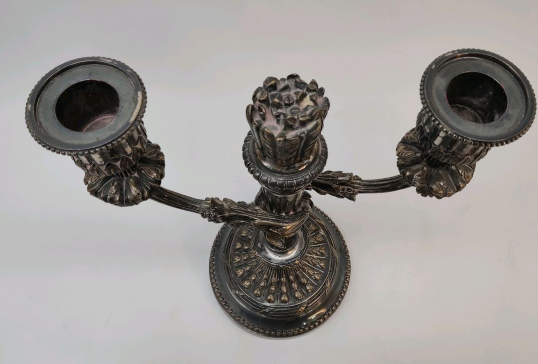 Pair of metal candleholders with two arms. Decorated shaft, two removable wicks. Height: 23 cm. - This lot is available everywhere in mainland France from €12.24 - This lot is available everywhere in Europe from €18.00